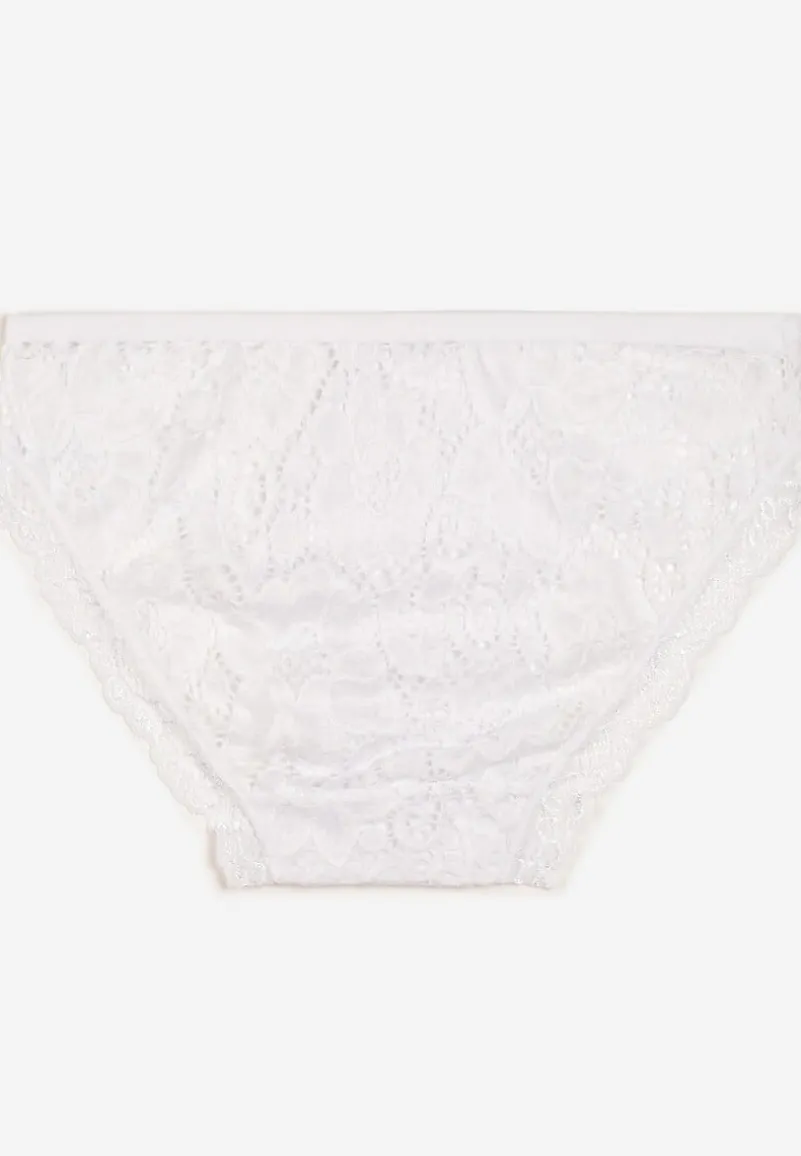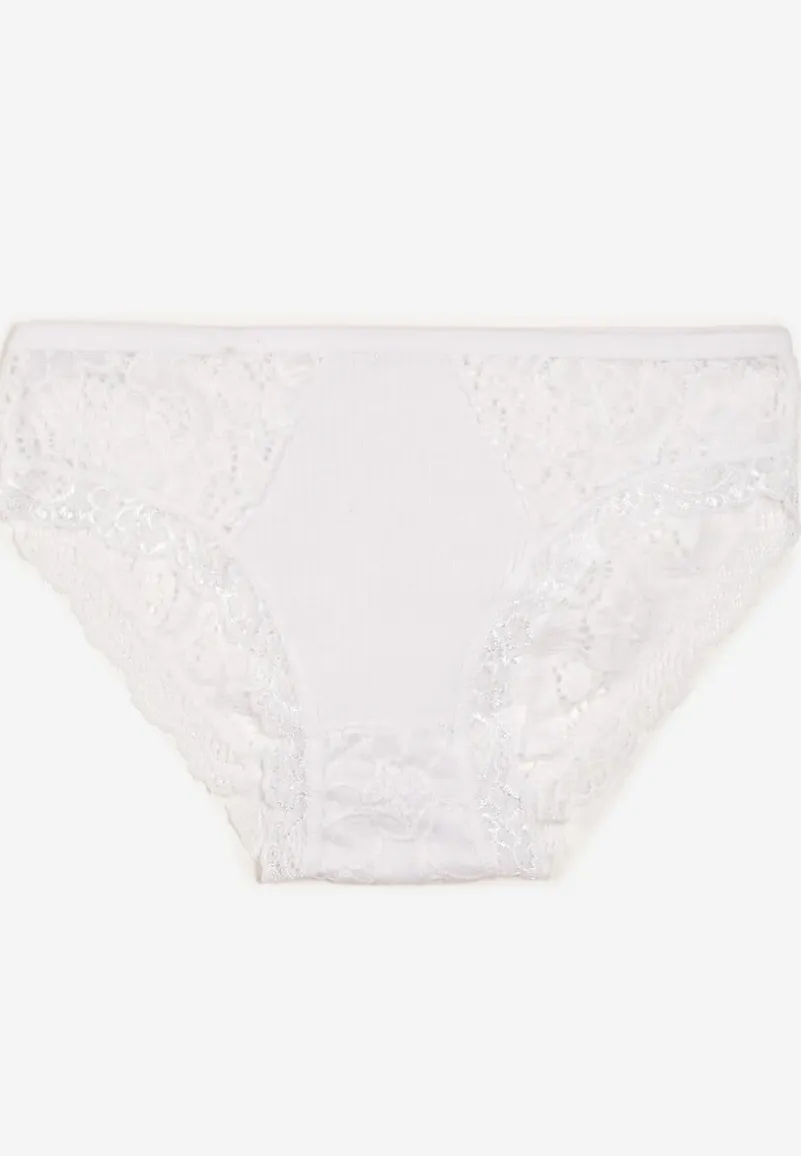 Majtki figi Okarde z ozdobną koronką i wstawką z prążkowanego materiału. Wykonane z elastycznej bawełny, która zapewni komfort przez cały dzień.