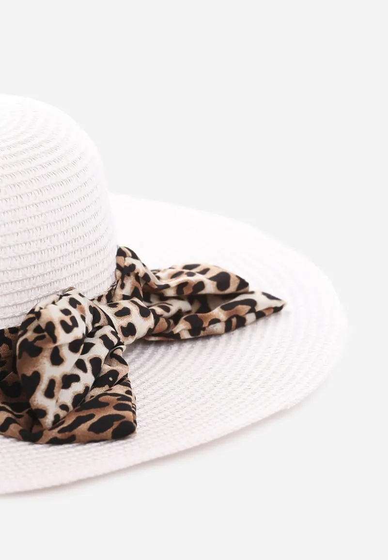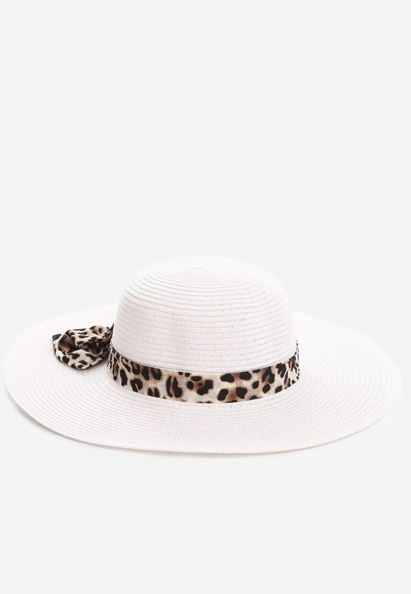 Kapelusz Adriatic słomkowy, z szerokim rondem. Zdobiony paskiem z animal printem i kokardą.