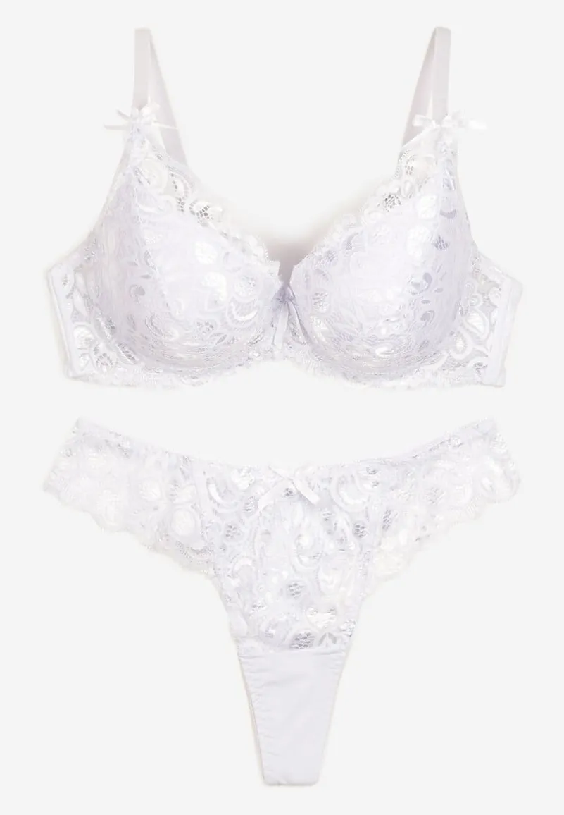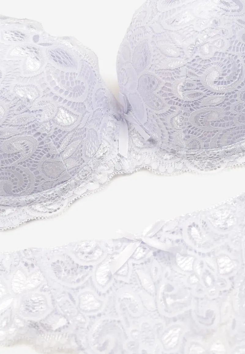 Komplet Bielizny z Koronką i Kokardkami to synonim kobiecości i subtelnego charakteru, który przemawia do nowoczesnych trendsetterek. Zjawiskowy wzór koronki pięknie podkreśla linie ciała, nadając sylwetce pożądanych kształtów, zaś starannie dobrane kokardki dodają całości uroku. Fason biustonosza i stringów gwarantuje zarówno wygodę, jak i wyraźną elastyczność materiału, umożliwiającą idealne dopasowanie. To zestaw, który możesz nosić pod ulubioną sukienką na romantyczną kolację.
