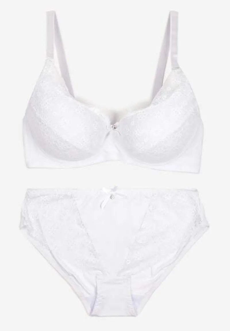 Odkryj wyjątkowość i elegancję w każdym szczególe nosząc komplet Nevenis. Koronkowy wzór jest nie tylko ponadczasowy, ale też wpisuje się w najnowsze modowe trendy. Usztywniany biustonosz fantastycznie modeluje kształt. Ozdobny detal, którym jest koronka, sprawia, że zestaw nabiera subtelnego charakteru. Wybierając go na co dzień, dodaj jedwabny szlafrok i komfortowe kapcie.