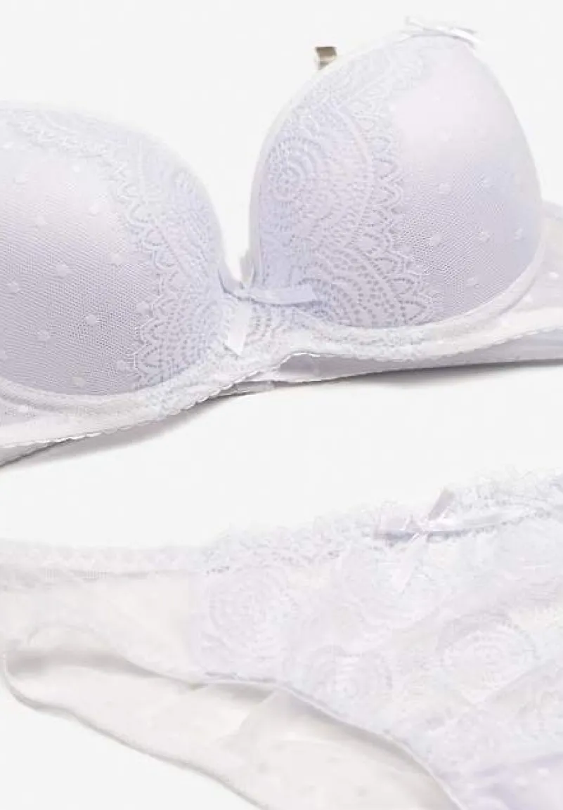 Komplet Arrbelia, z finezyjną linią i koronkowym wzorem, to kwintesencja kobiecości niezależnie od sezonu. Usztywnienie biustonosza na haftki gwarantuje dopasowanie. Fason fig z subtelną kokardką dodaje uroku, a ponadczasowe zdobienia z koronki sprawiają, że zestaw jest wyjątkowy. Spróbuj go połączyć z szyfonową koszulą i wysokim stanem spodni dla codziennej elegancji albo, na wieczór, wpasuj w look z satynową sukienką i fakturą weluru na okryciu wierzchnim, by podkreślić swój styl i klasę.