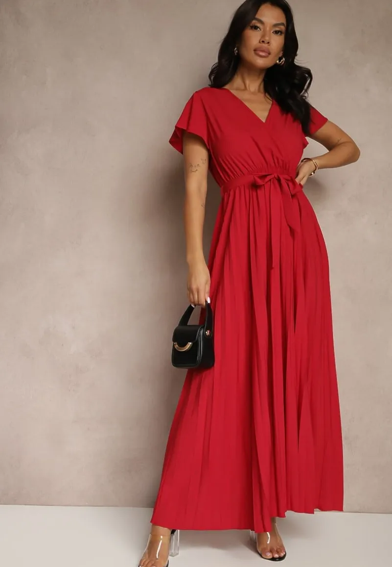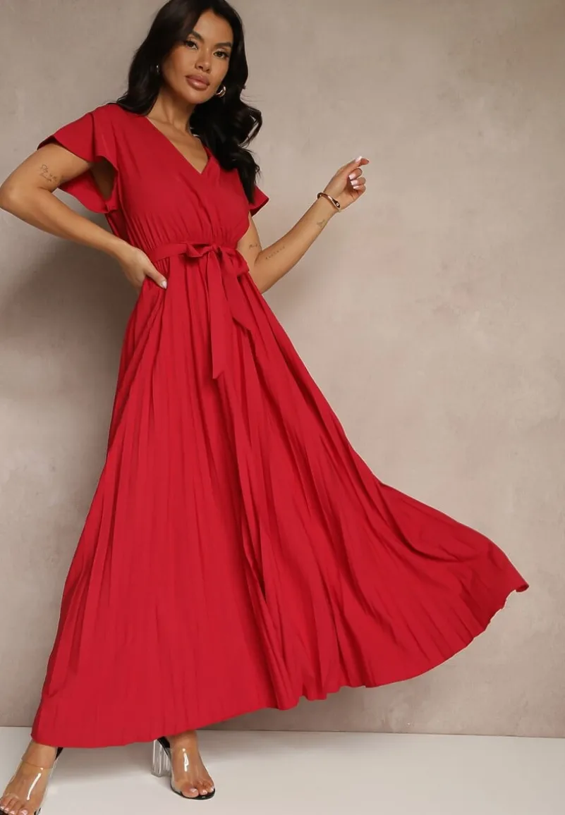 Sukienka Phoelia ma długość maxi i jest wykończona pięknymi plisami. Idealnie sprawdzi się na uroczyste przyjęcia i eleganckie wyjścia. Ma trójkątny dekolt oraz wiązanie w talii.