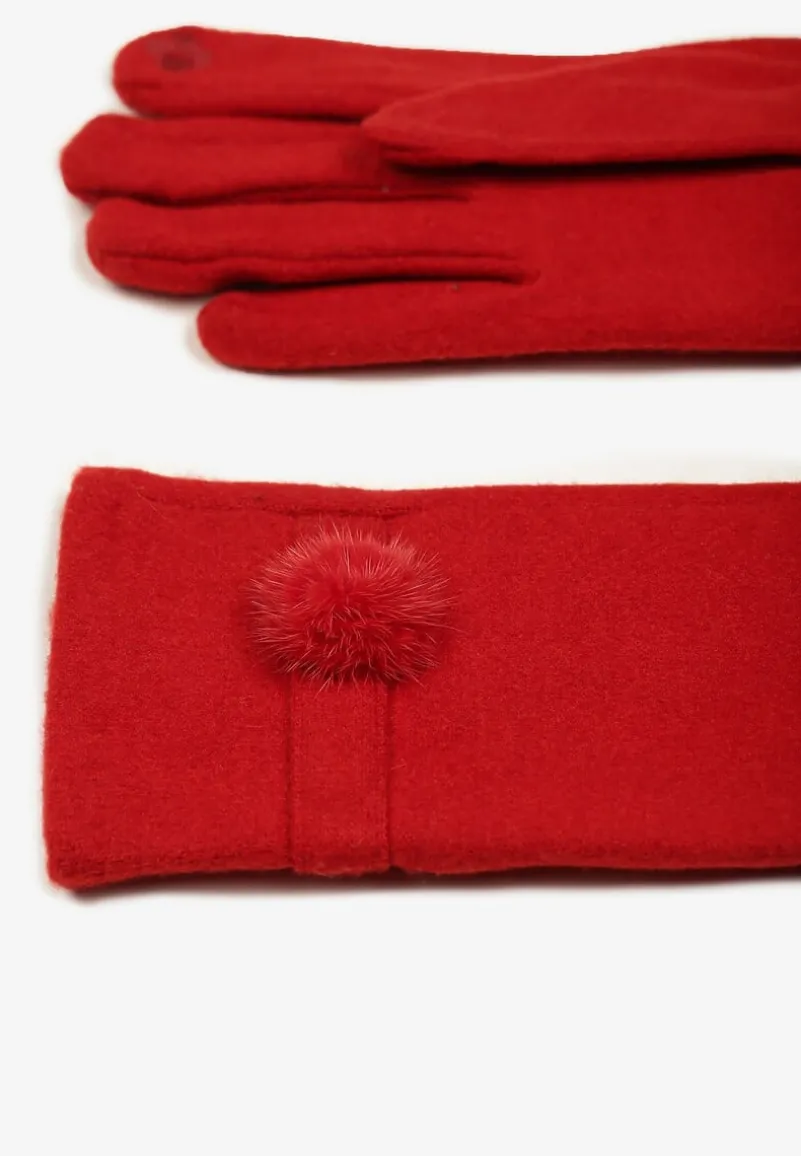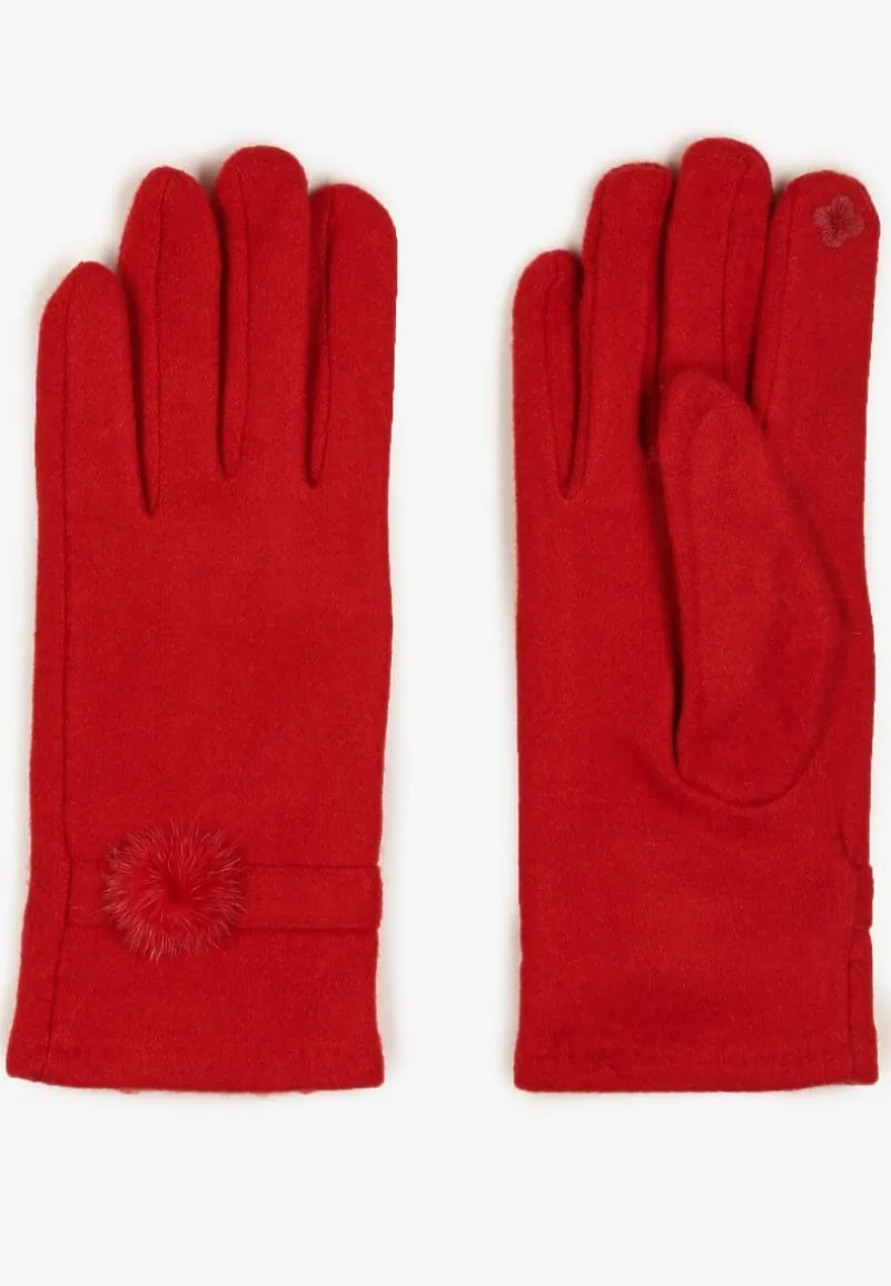 Bordowe Rękawiczki Dzianinowe z Dodatkiem Bawełny Ozdobione Pomponem Zinnatra
