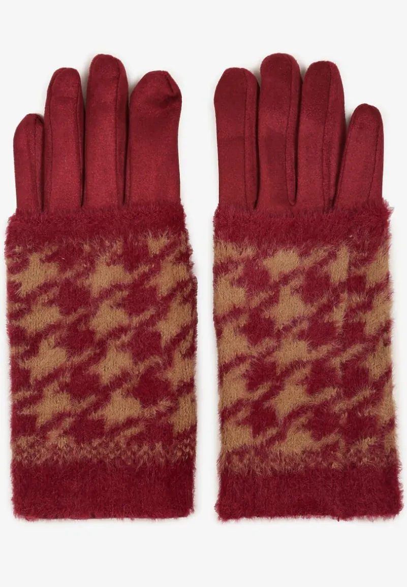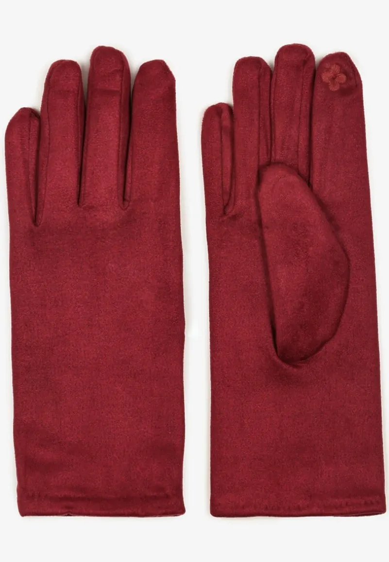Bordowe Rękawiczki Welurowe z Ozdobną Dzianinową Nakładką Seliti