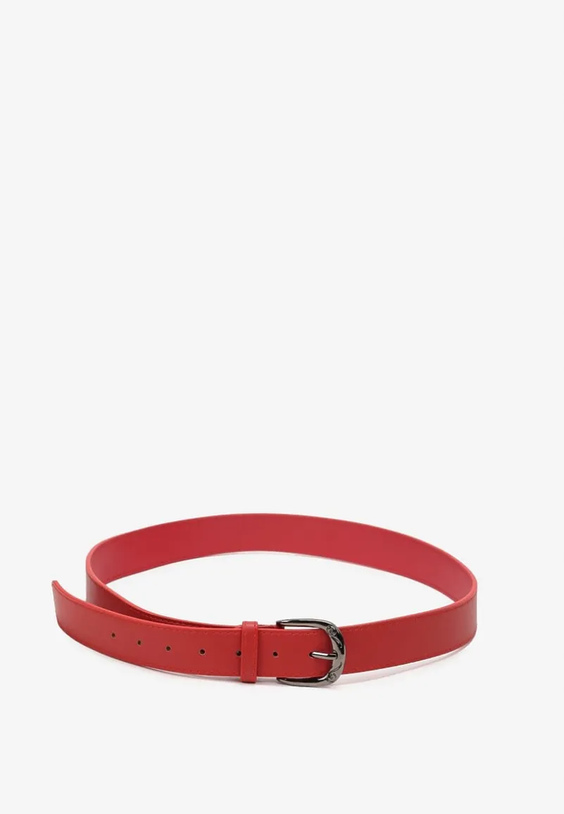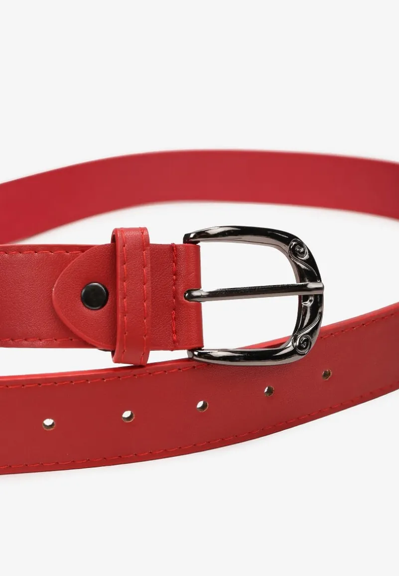 Pasek Fleureti zdobiony z przodu metalową klamerką. Model wykonany ze skóry ekologicznej.