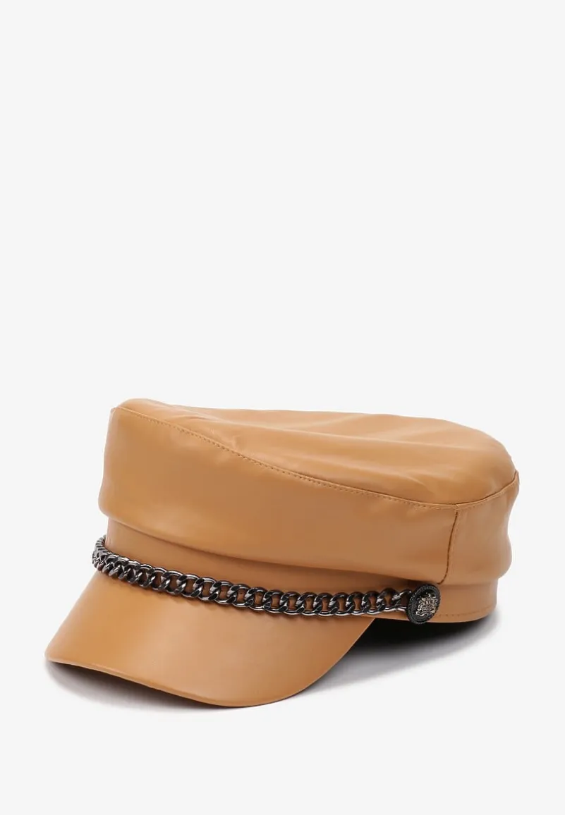 Czapka Raraya w kaszkietu z daszkiem. Wykonana z ekoskóry ozdobionej metalowym łańcuszkiem. Nadaj swoim stylizacjom odmiennego charakteru z czapką Raraya i zabłyśnij na nowo!