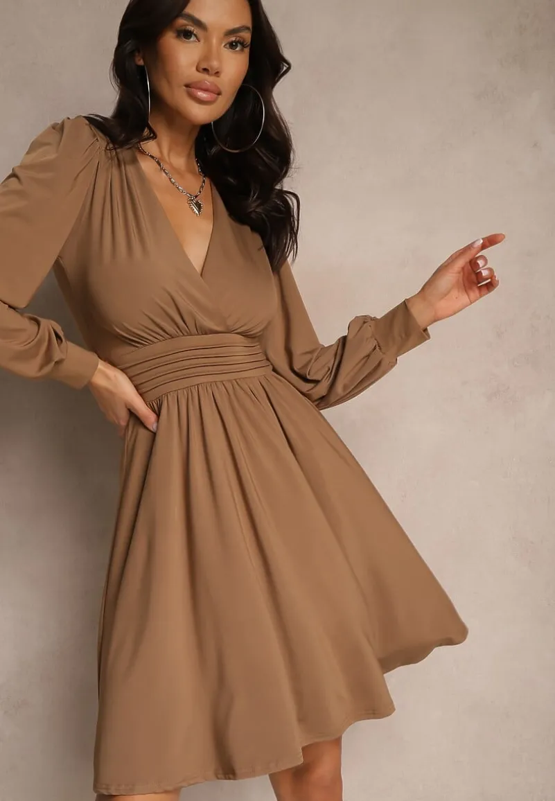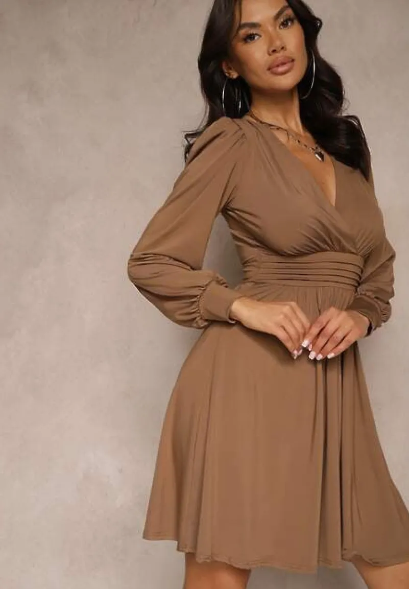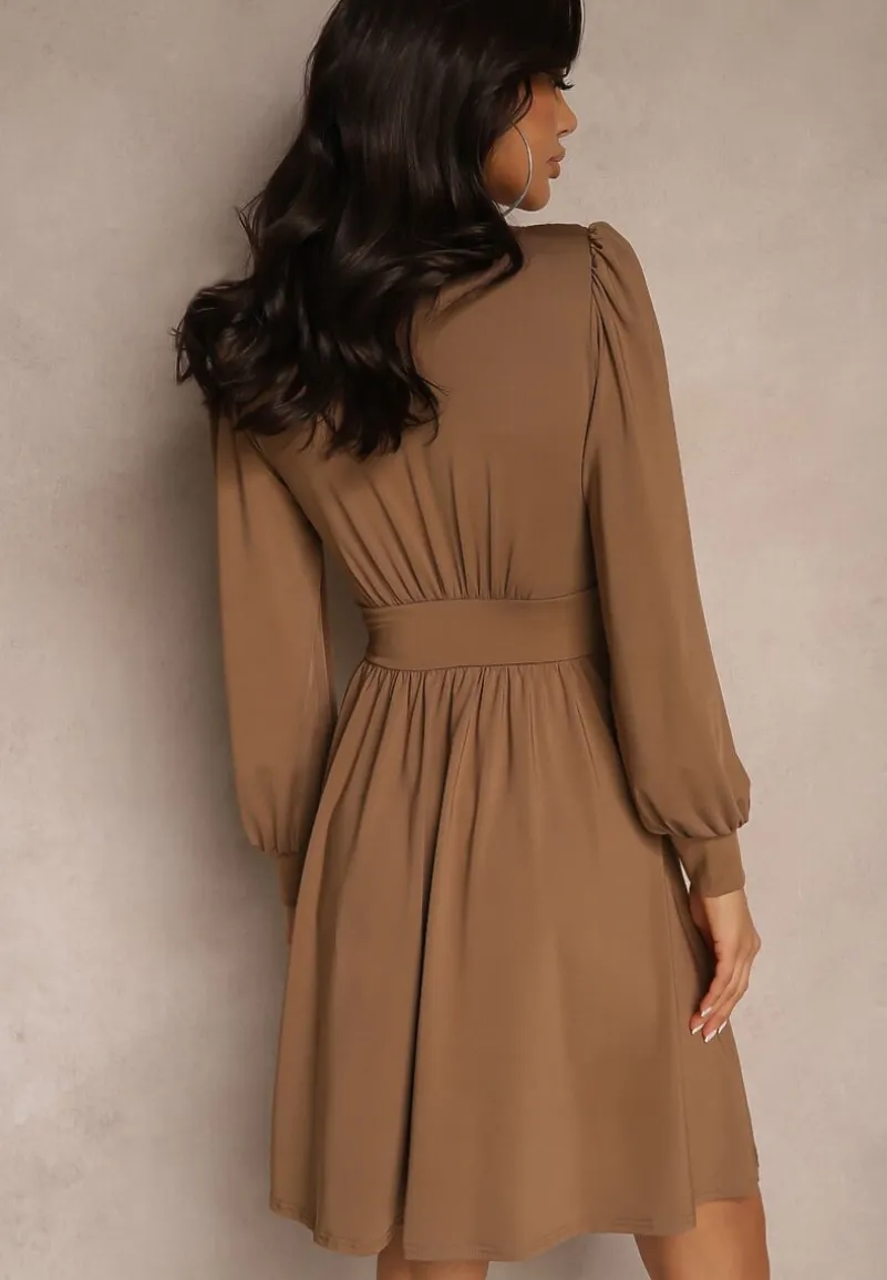 Brązowa Sukienka z Wiskozą o Rozkloszowanym Kroju Selaitea