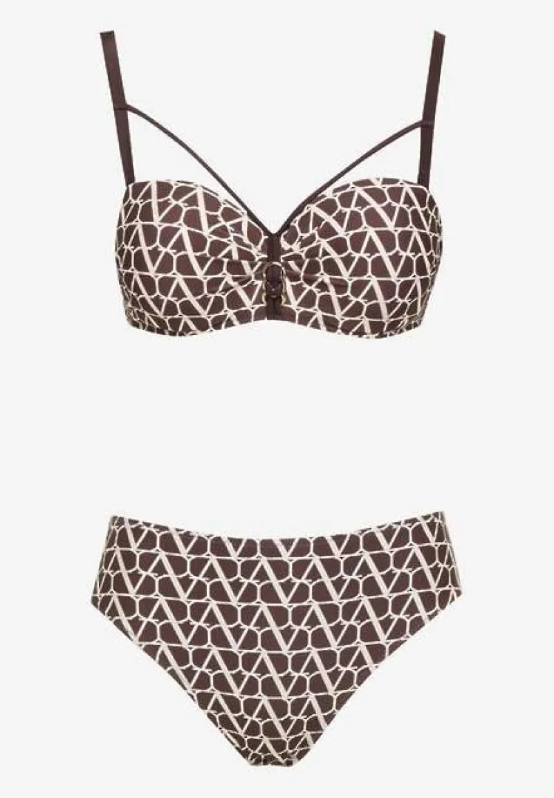 Brązowe Bikini Biustonosz i Majtki Typu Figi w Geometryczny Wzór Linarissa