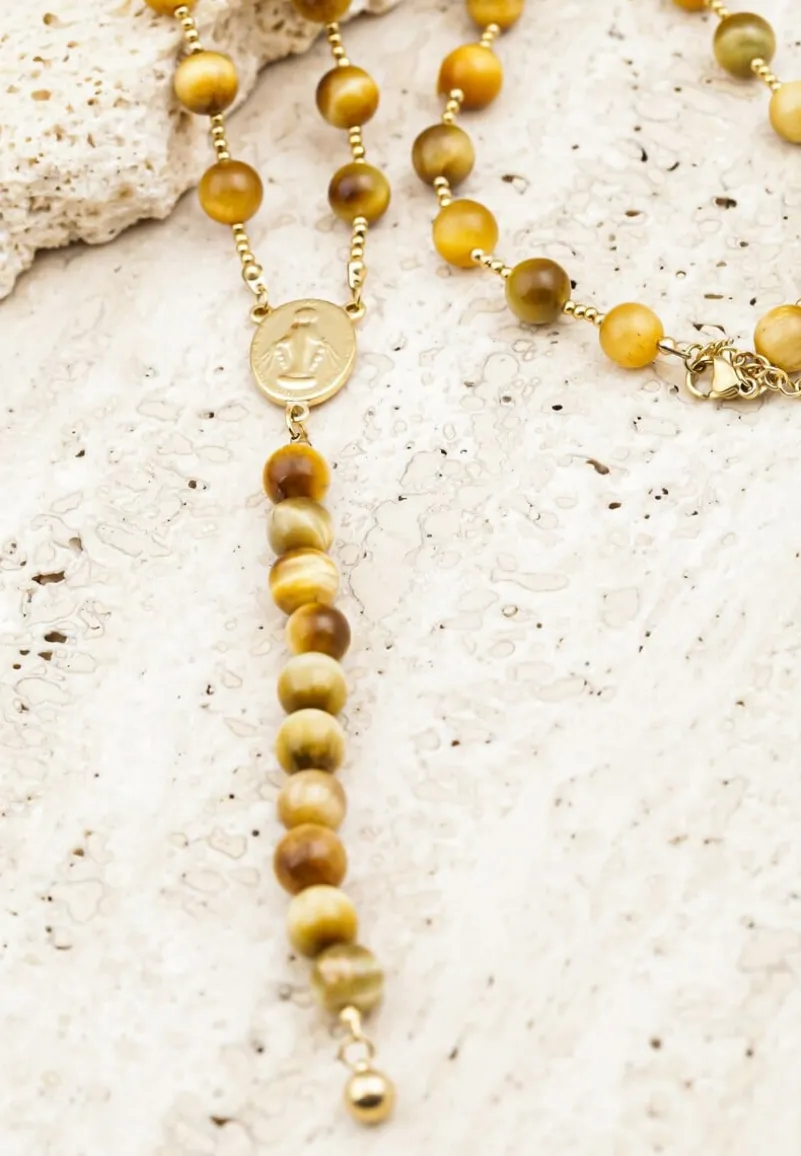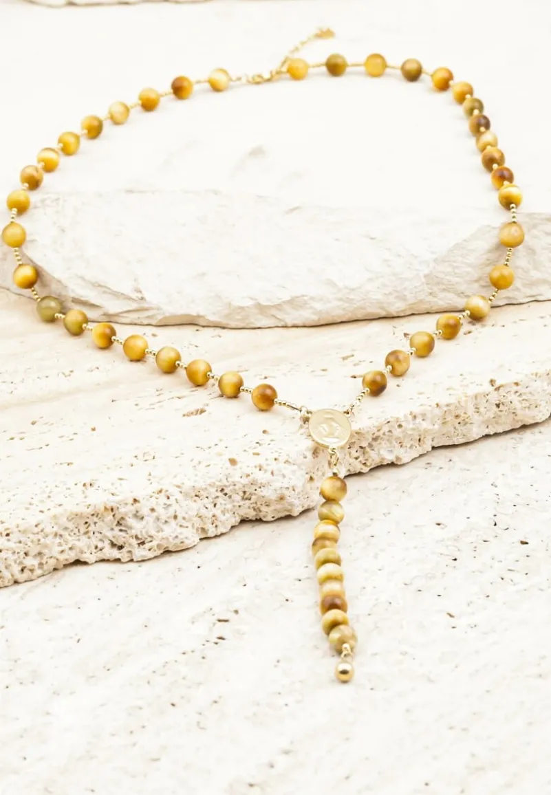Naszyjnik Lavendoni zdobiony drobnymi koralikami oraz medalionem. Model wykonany ze stali nierdzewnej.