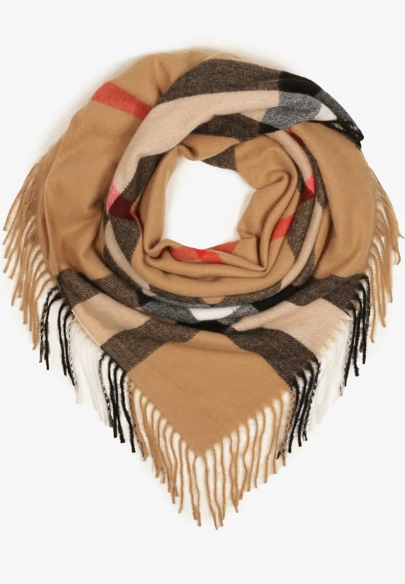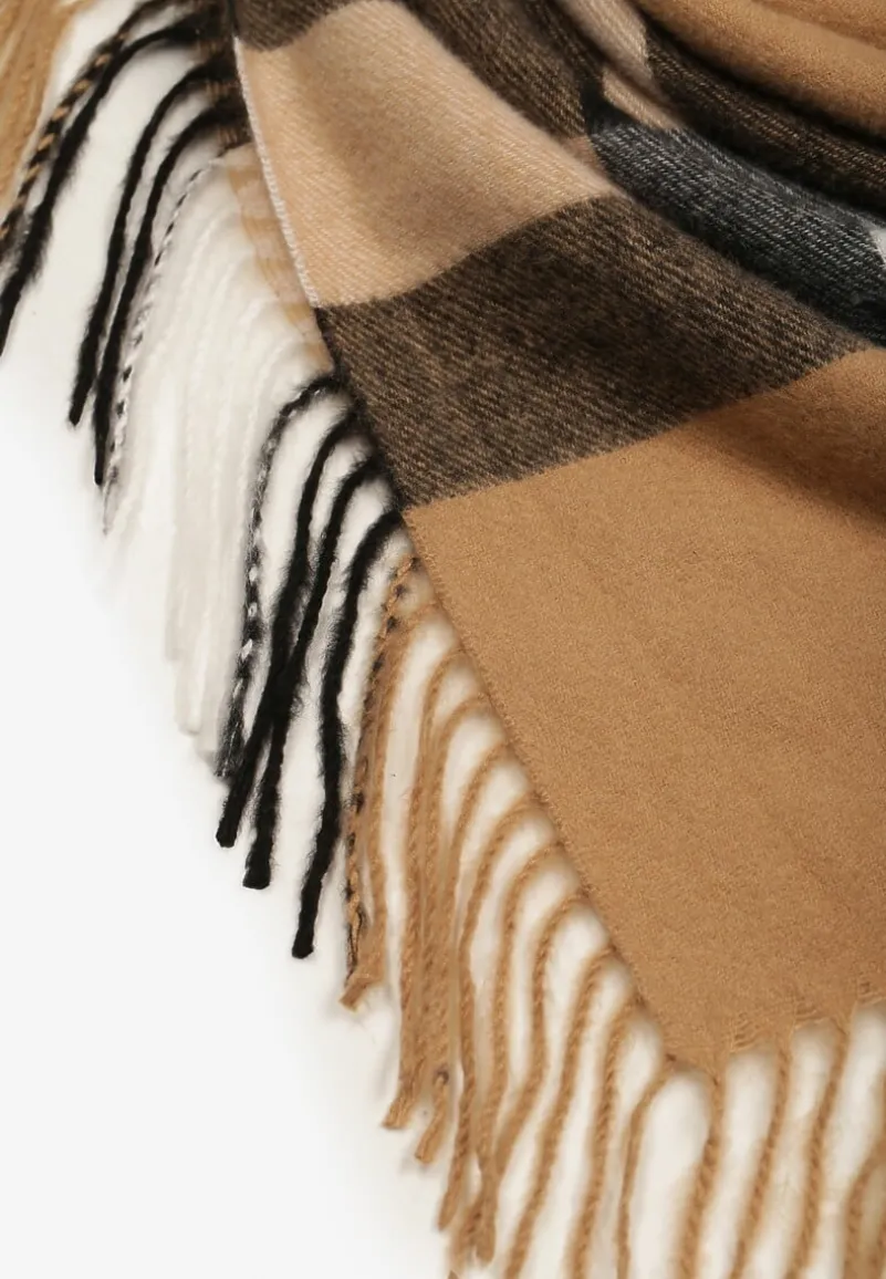 Brązowy Szalik z Wiskozą i Bawełną Ozdobiony Frędzlami Siathrae