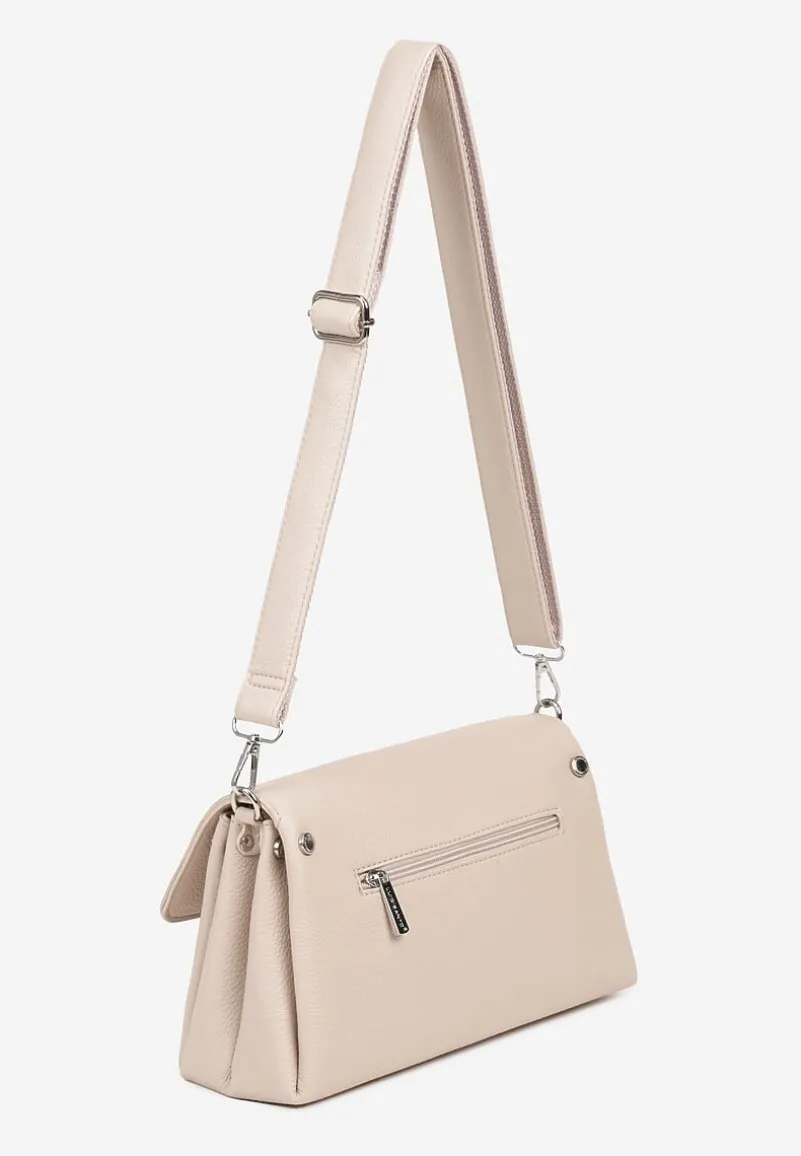 Trapezowa Torebka Typu Listonoszka z Klapą Gesselle to niezastąpiony must-have w szafie każdej modowej entuzjastki. Jej trójkomorowy fason umożliwia doskonałą organizację, co czyni ją praktycznym wyborem na co dzień lub spotkania ze znajomymi. Wyposażona w regulowany pasek z możliwością odpięcia, torebka zachwyca swoim eleganckim fasonem, który doda szyku zarówno casualowym, jak i formalnym outfitom. Świetnie skomponuje się z oversize’owym swetrem i jeansami na co dzień, ale również z elegancką sukienką oraz szpilkami na wieczorne wyjście. Musisz ją mieć! Torebka nie mieści formatu A4.
