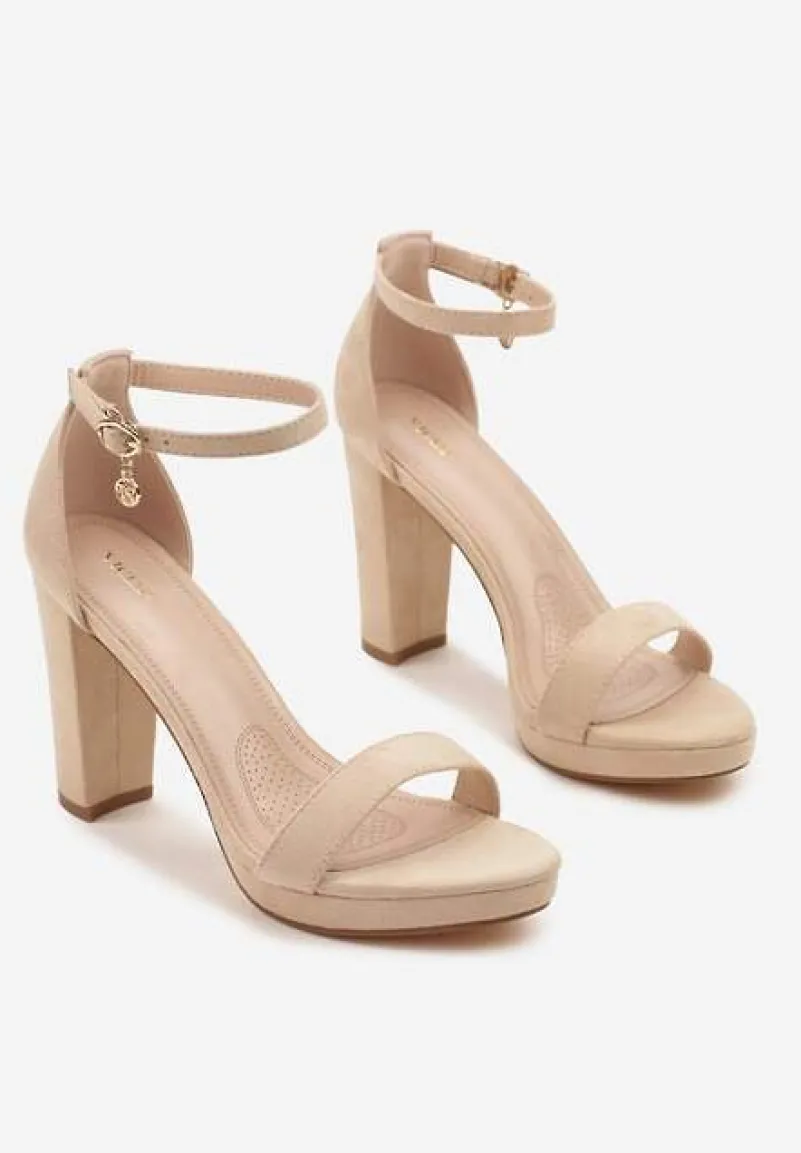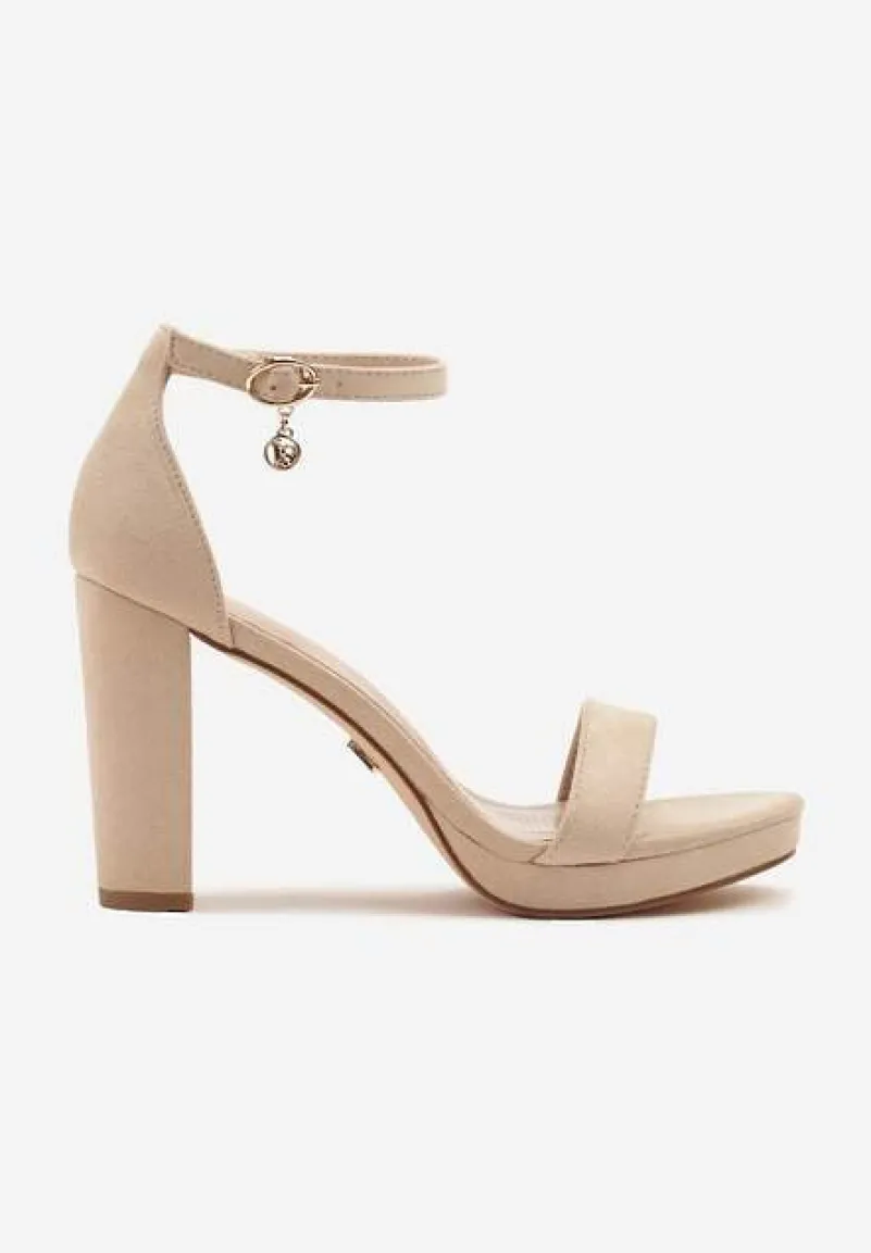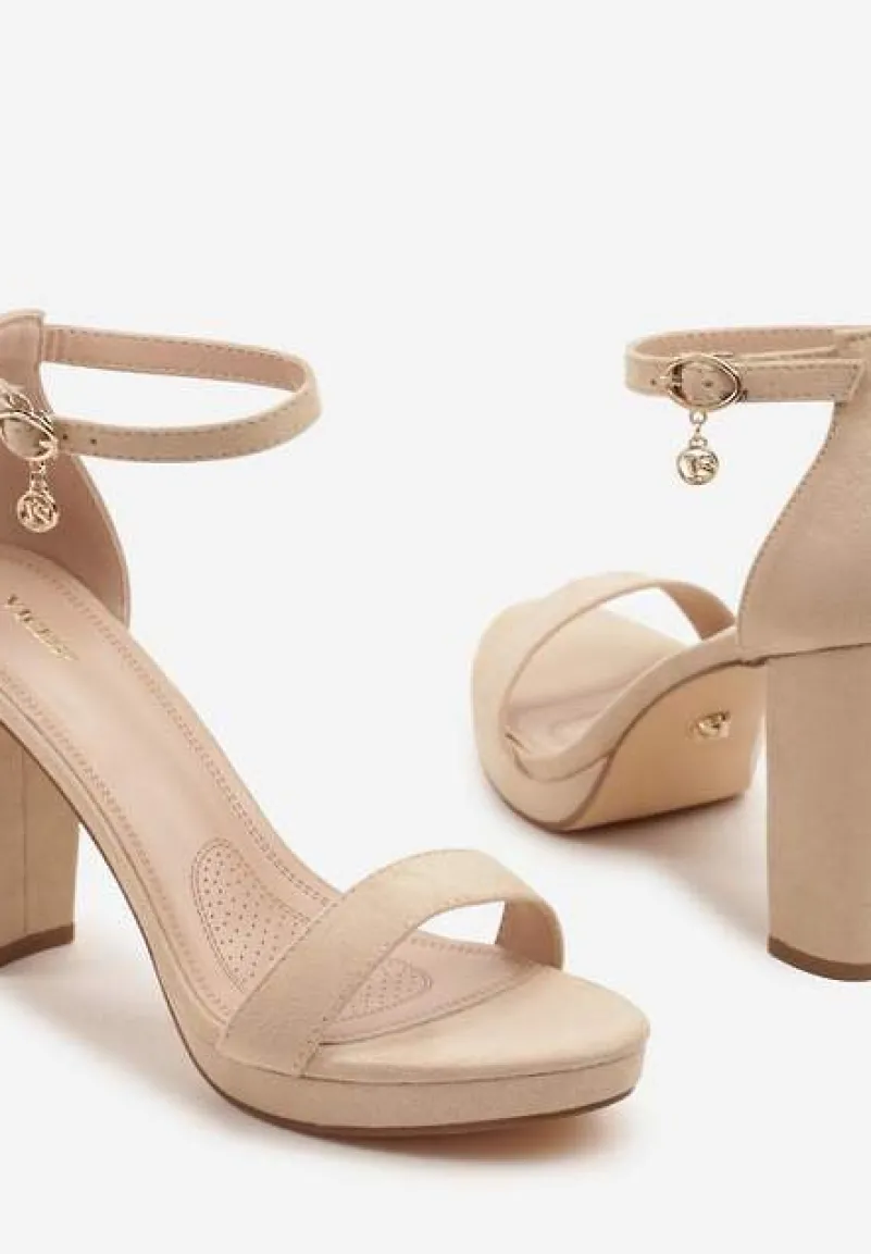 Ciemnobeżowe Basicowe Sandały Vices na Platformie i Słupku Taeli