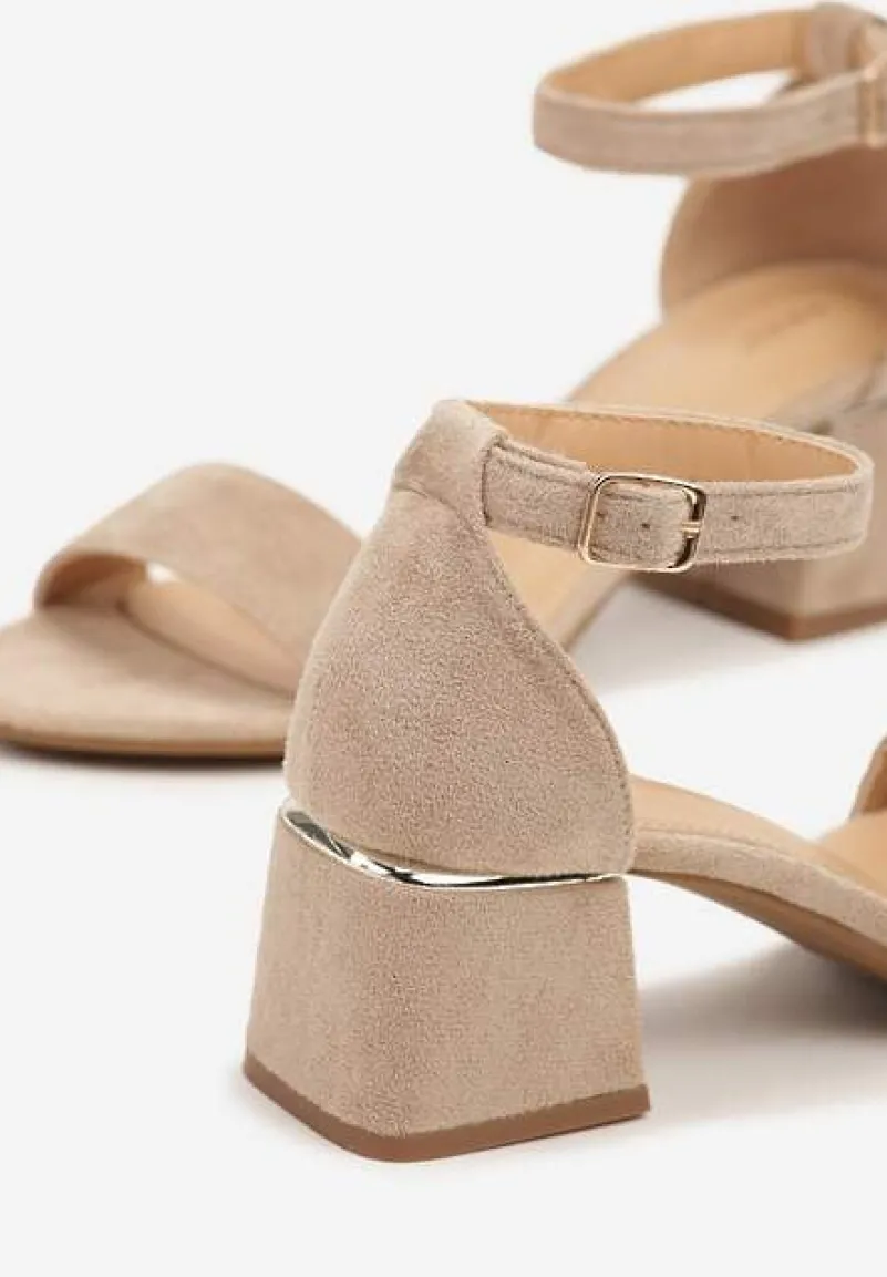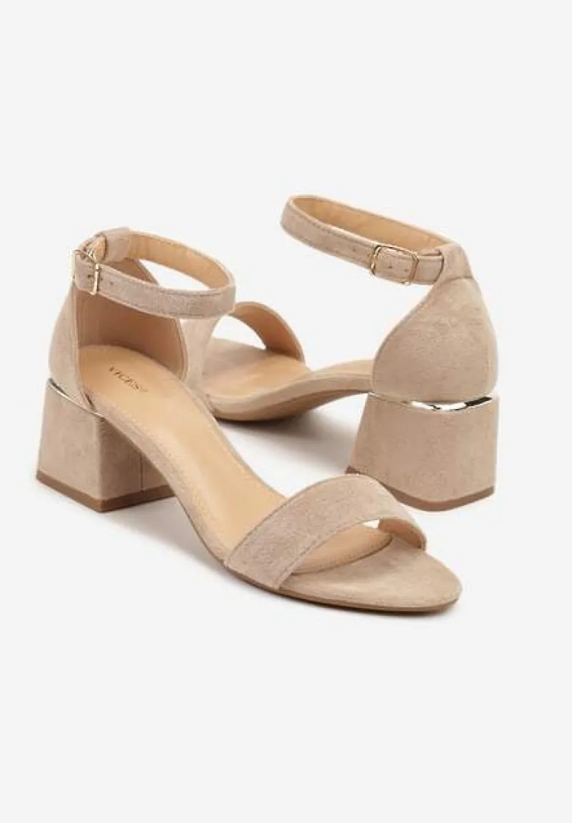 Ciemnobeżowe Basicowe Sandały Vices na Słupku Ralira