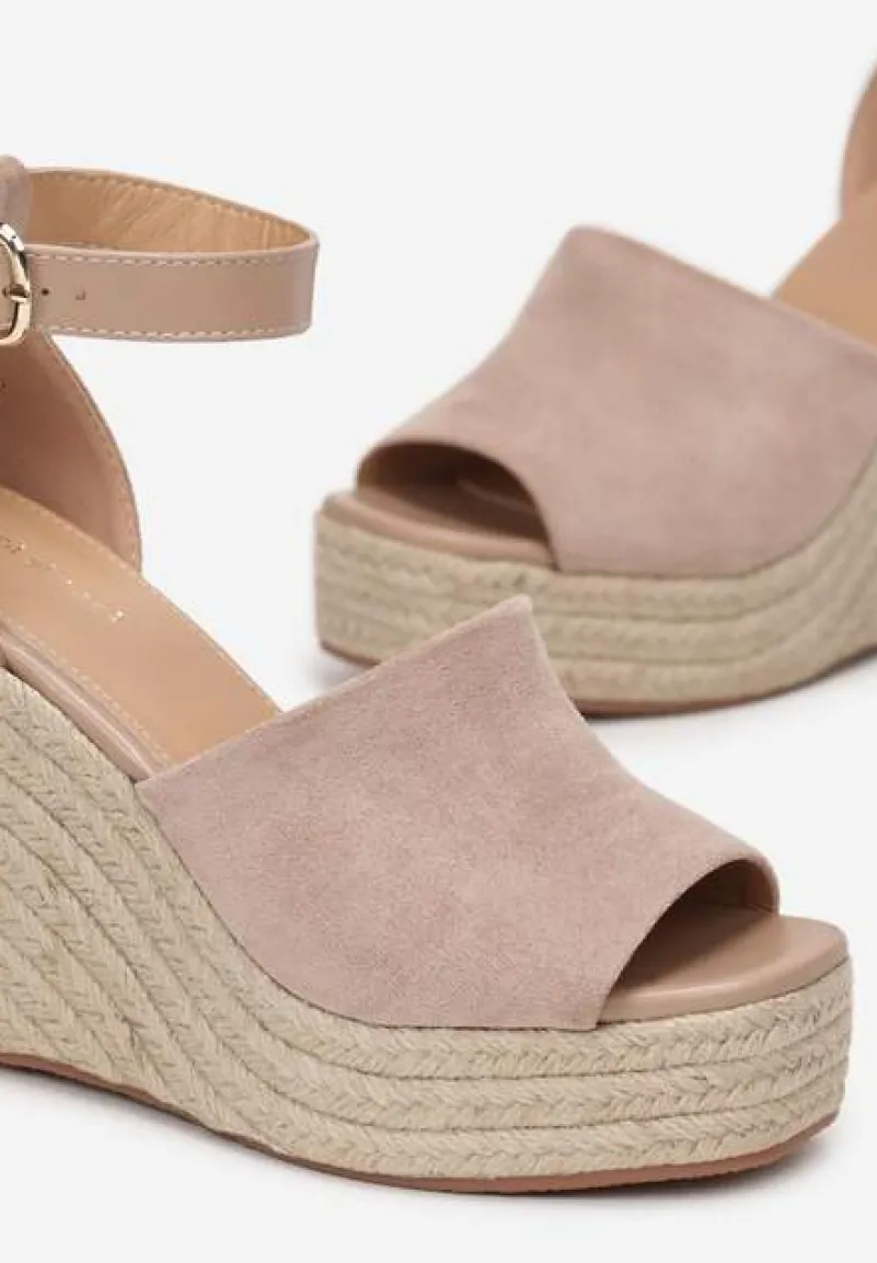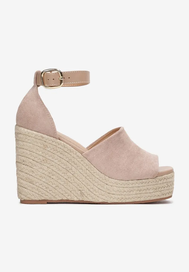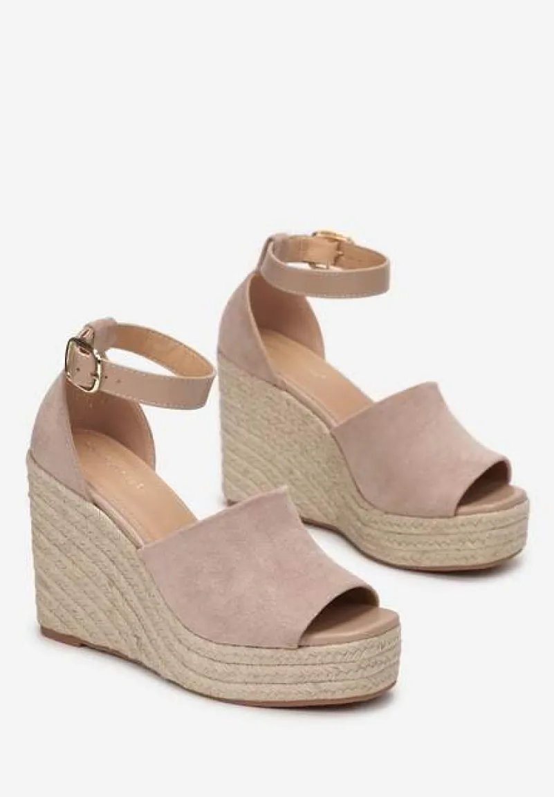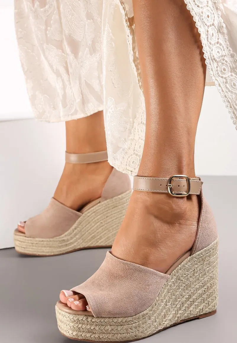 Plecione sandały Fimieshe zapinane na pasek z klamerką na wysokości kostki. Osadzone na platformie i wysokim obcasie typu koturn. Brokatowe sandały Fimieshe doskonale dopełnią stylizacje z letnimi spodniami czy sukienkami.