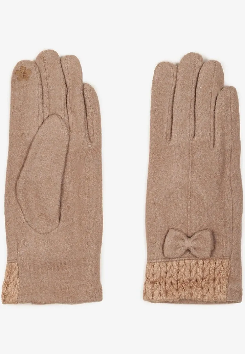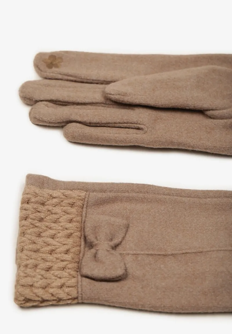 Ciemnobeżowe Rękawiczki z Bawełną Ozdobione Kokardką Visemi