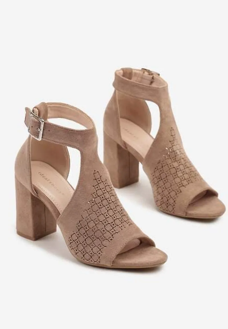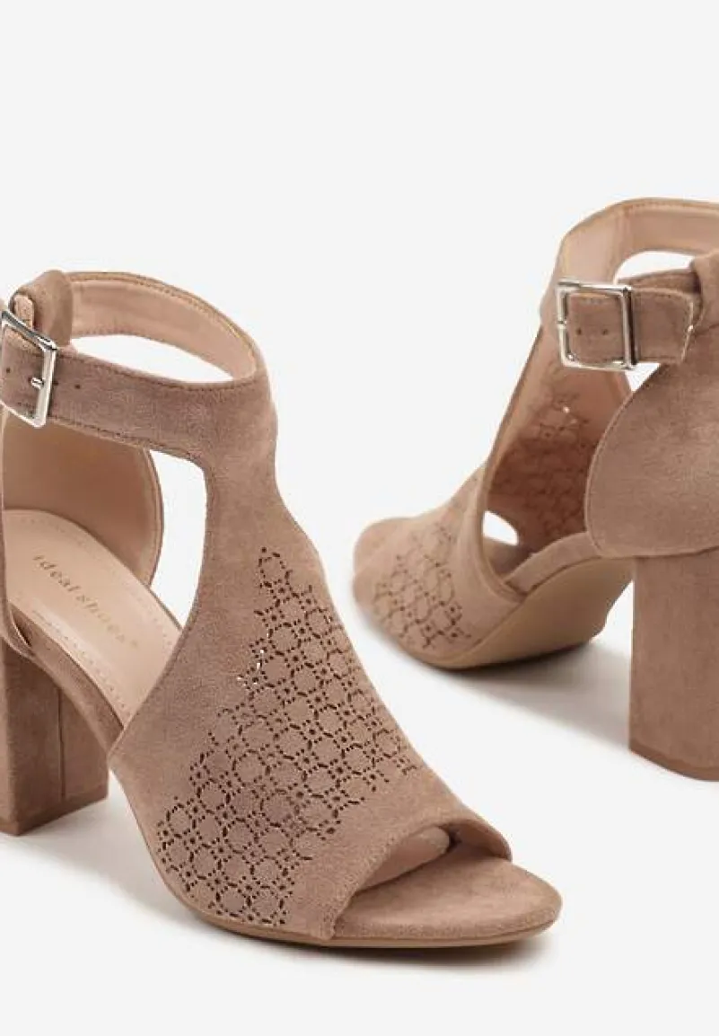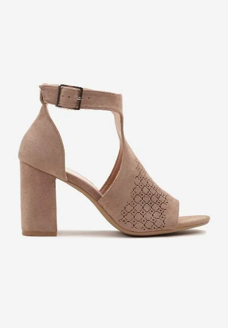 Ciemnobeżowe Sandały Botki ze Sprzączką na Słupku Ciarilora