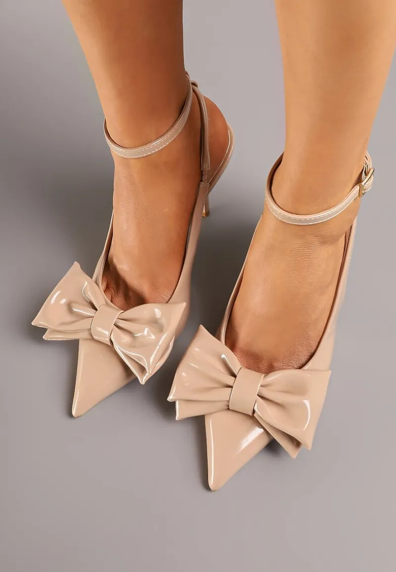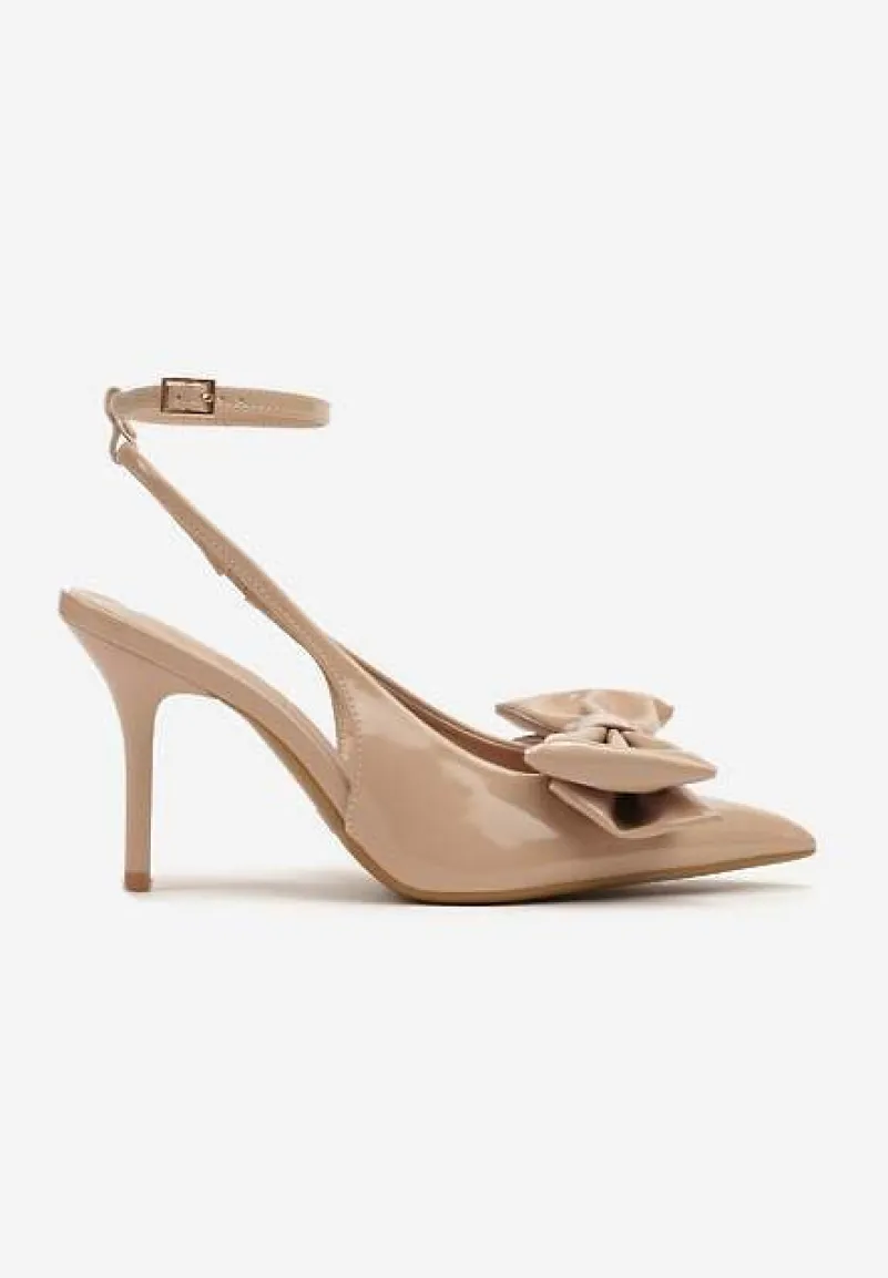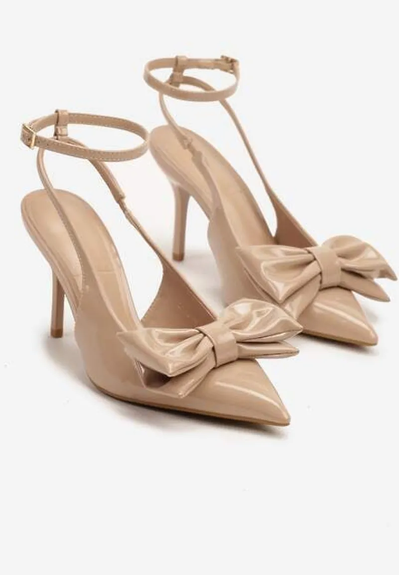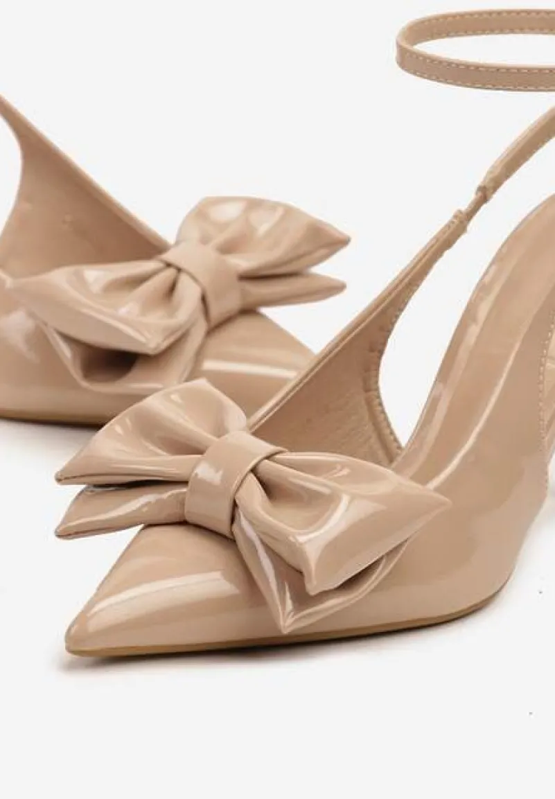 Ciemnobeżowe Sandały na Szpilce Vices z Dużą Kokardką Bez Pięty Velozia