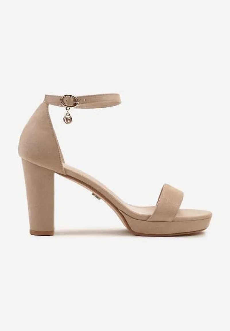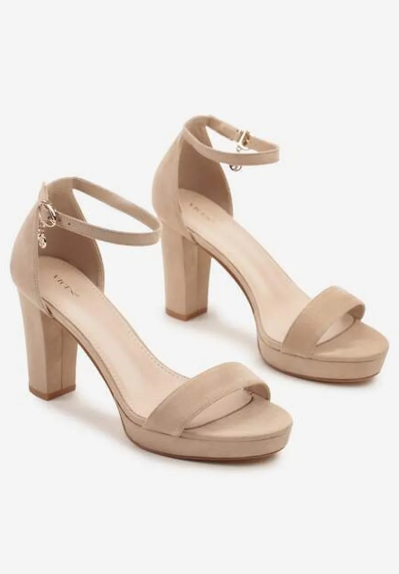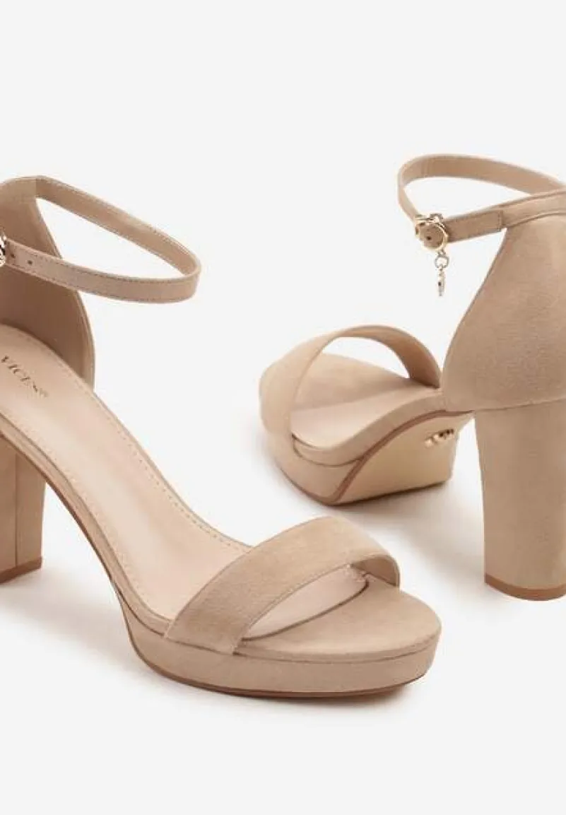 Ciemnobeżowe Sandały Vices na Słupkowym Obcasie z Paskiem Wokół Kostki Maritira