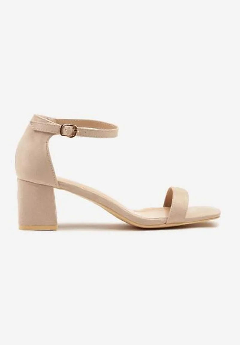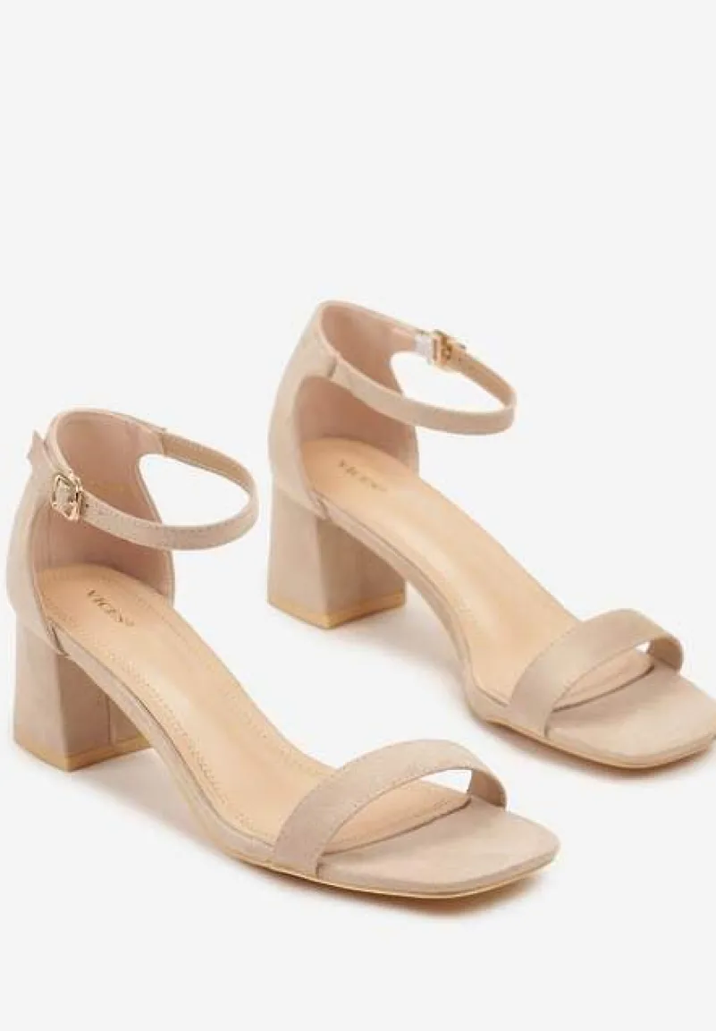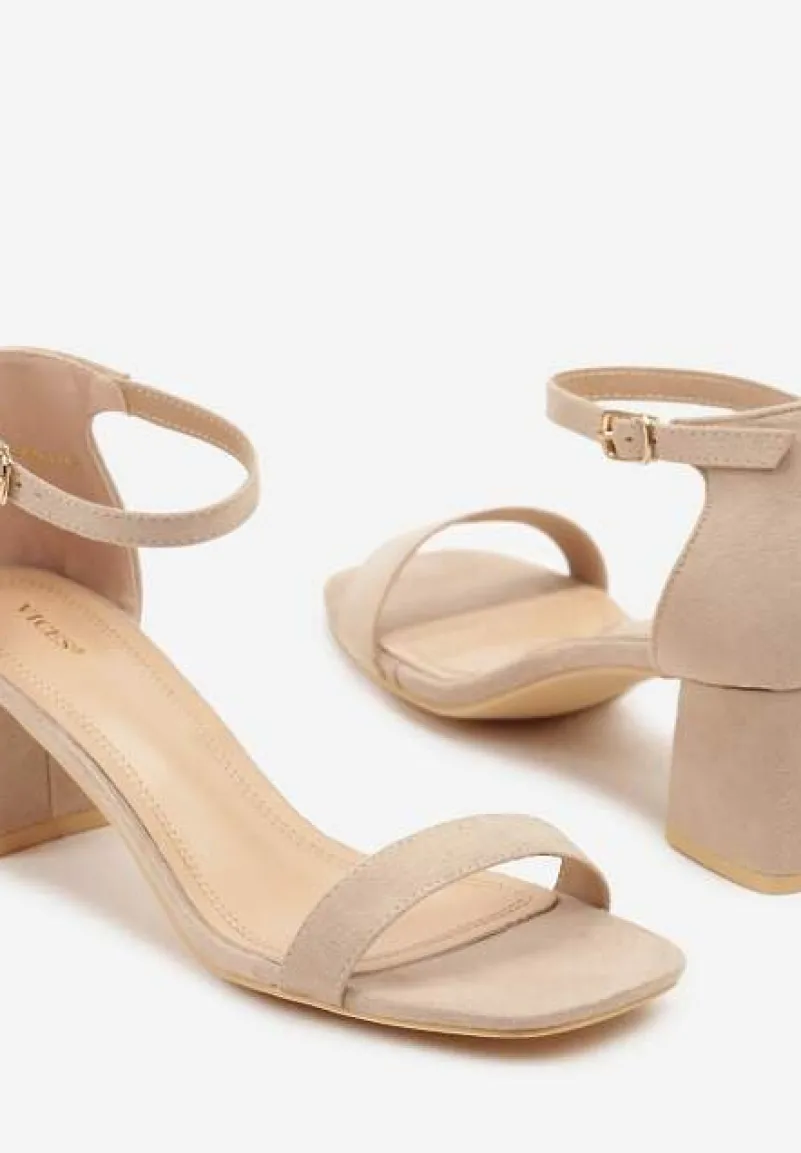 Ciemnobeżowe Sandały Vices na Słupku z Kwadratowym Noskiem Galamia