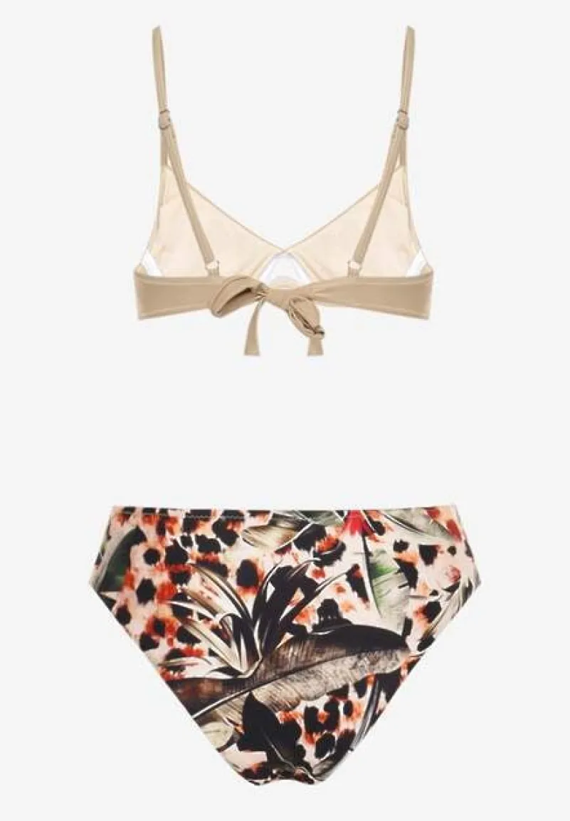 Ciemnobeżowy Strój Kąpielowy Bikini z Usztywnionym Biustonoszem i Wzorzystymi Figami Pialette