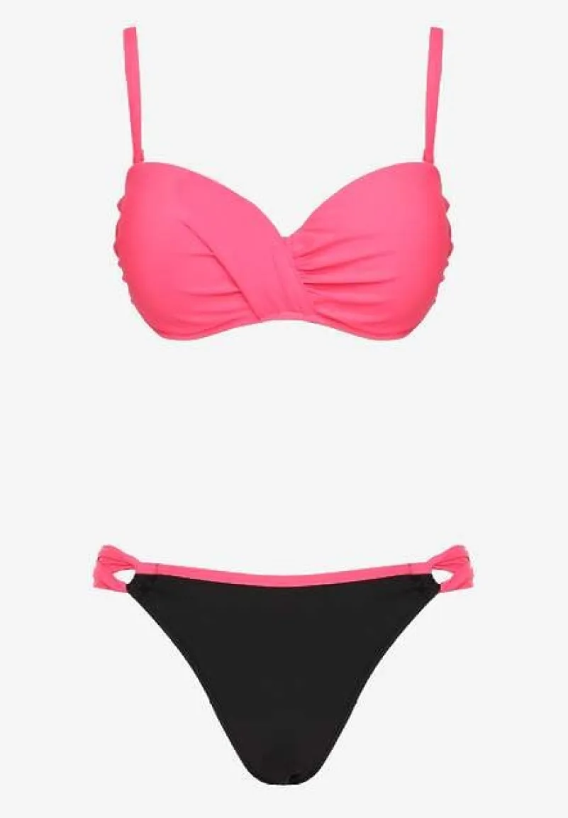 Ciemnoróżowe Bikini Majtki Figi i Biustonosz z Marszczeniem Sepiana
