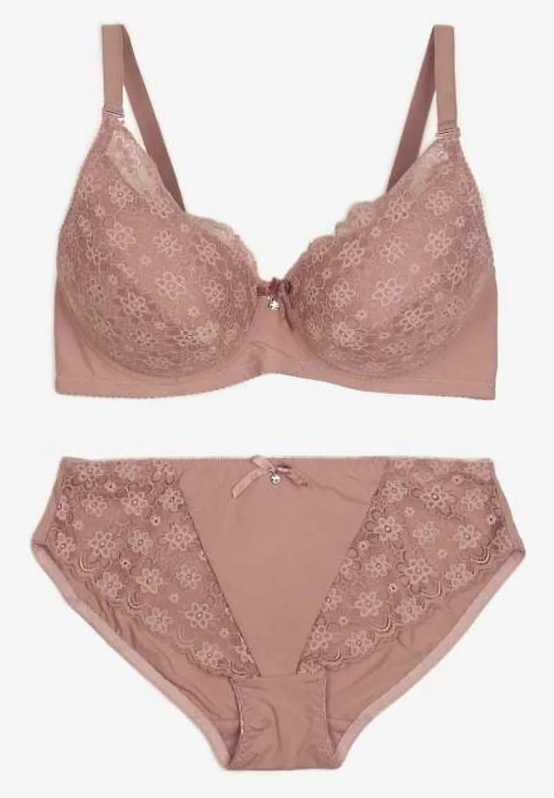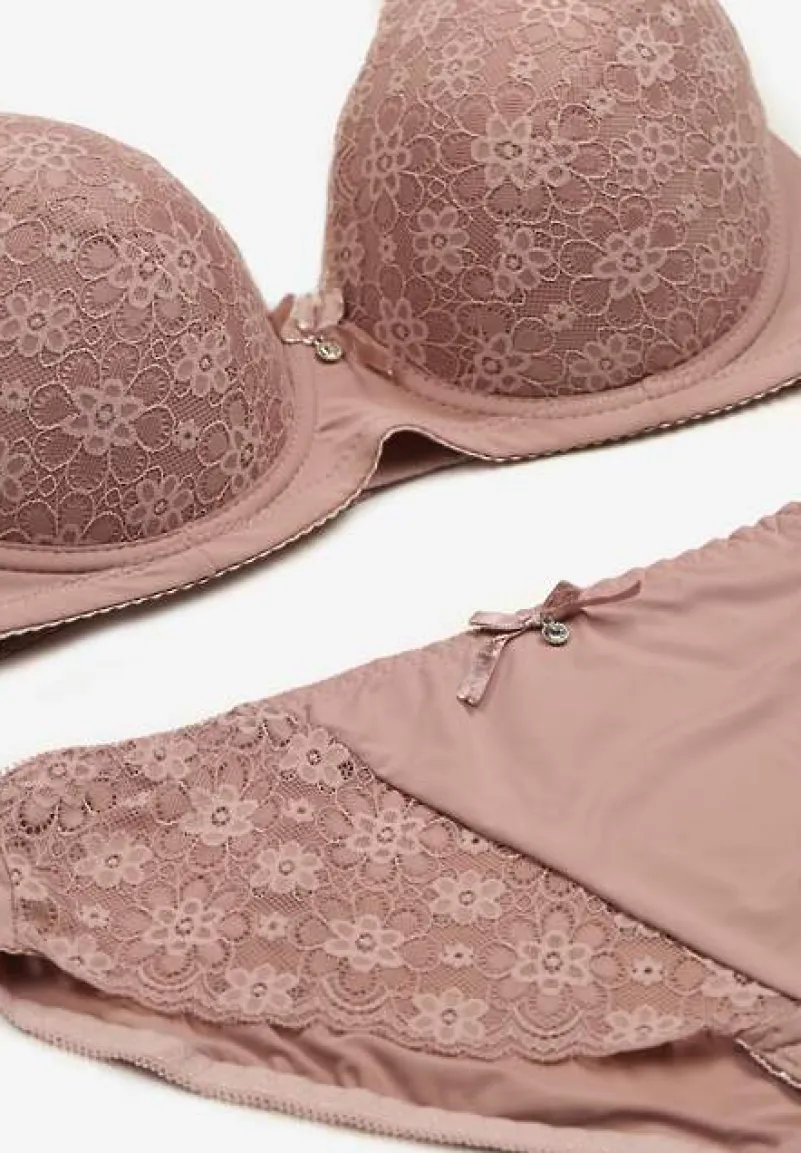 Odkryj wyjątkowość i elegancję w każdym szczególe nosząc komplet Nevenis. Koronkowy wzór jest nie tylko ponadczasowy, ale też wpisuje się w najnowsze modowe trendy. Usztywniany biustonosz fantastycznie modeluje kształt. Ozdobny detal, którym jest koronka, sprawia, że zestaw nabiera subtelnego charakteru. Wybierając go na co dzień, dodaj jedwabny szlafrok i komfortowe kapcie.