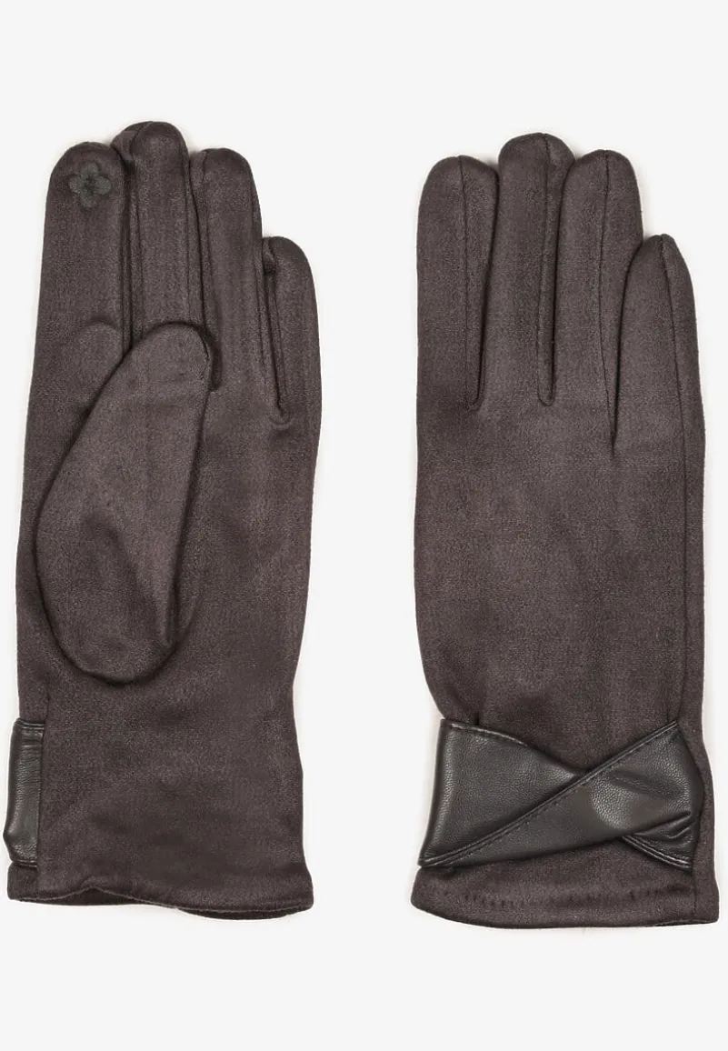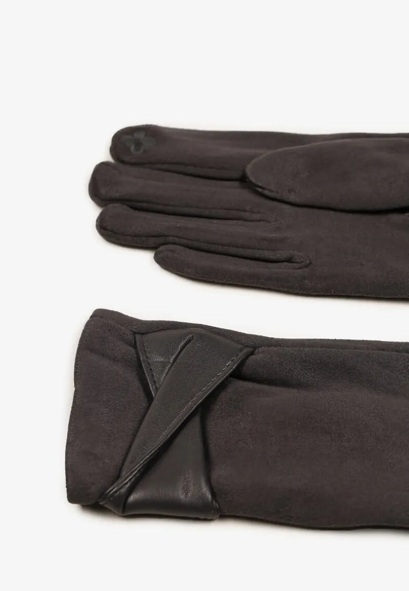 Ciemnoszare Eleganckie Rękawiczki z Bawełną i Wywiniętą Aplikacją przy Nadgarstku Sissemi
