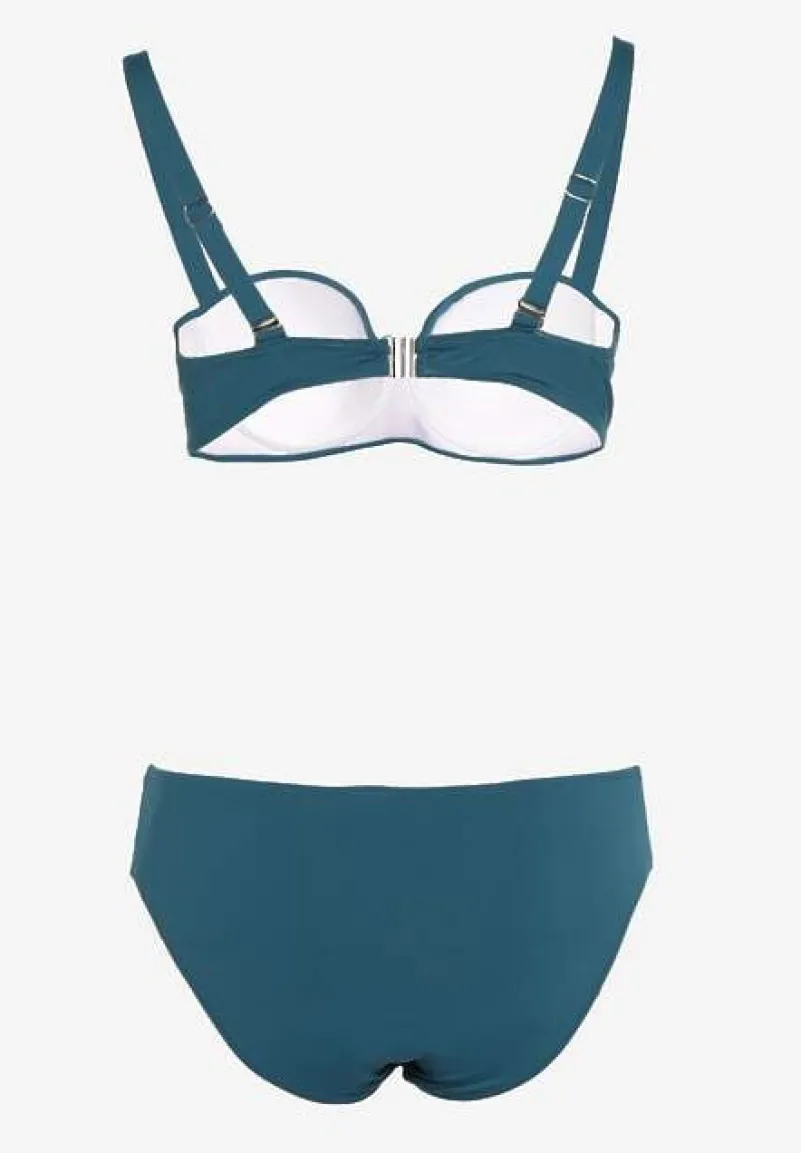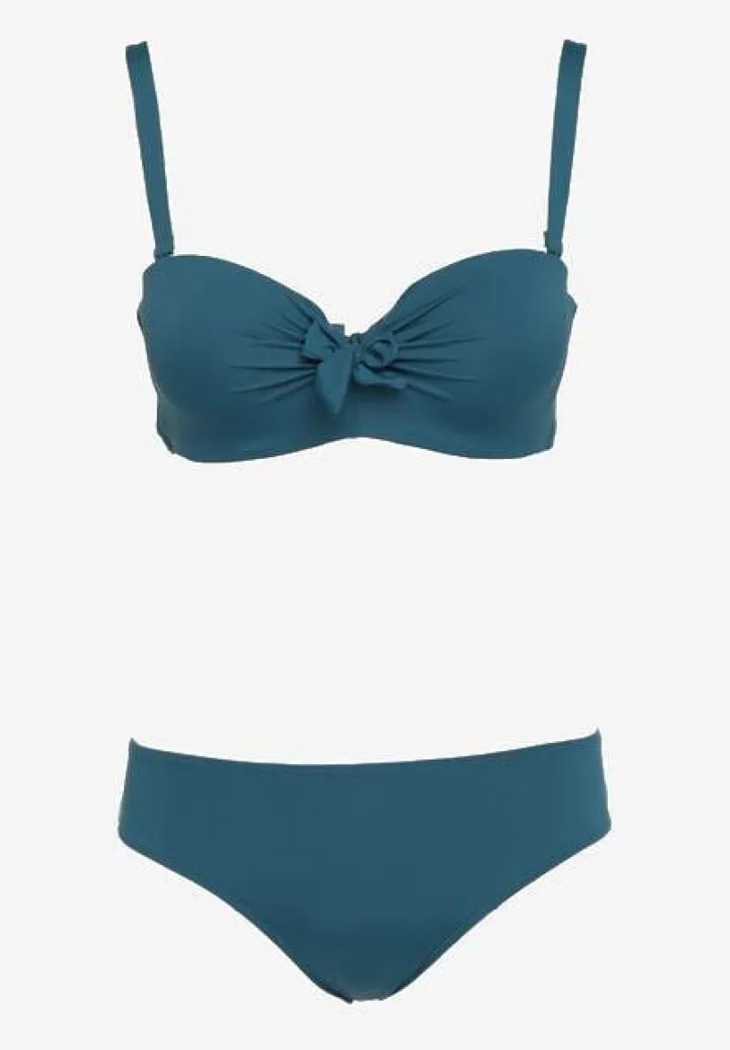 Ciemnozielone Bikini Strój Kąpielowy Dwuczęściowy z Ozdobnym Marszczeniem Nariella