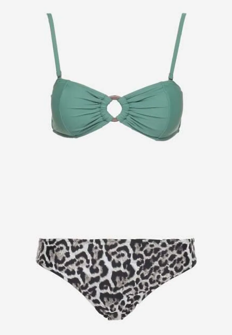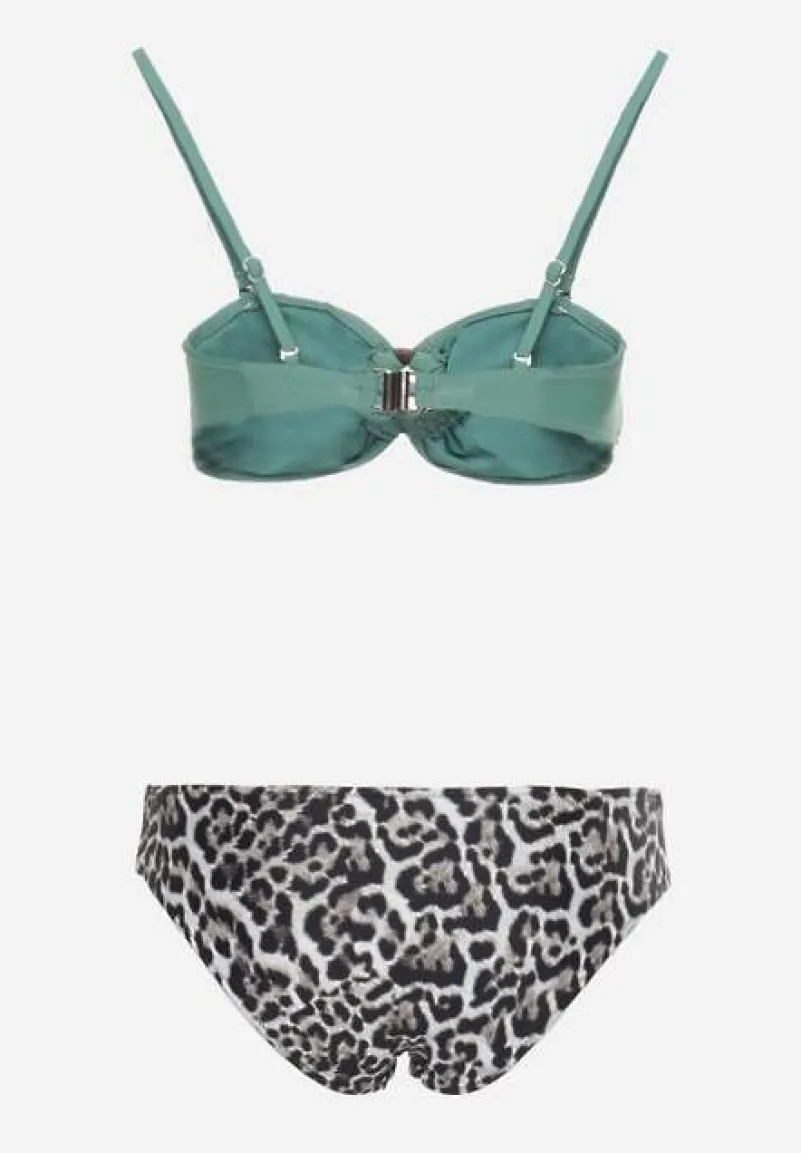 Ciemnozielone Bikini w Panterkę na Cienkich Ramiączkach Naiahes