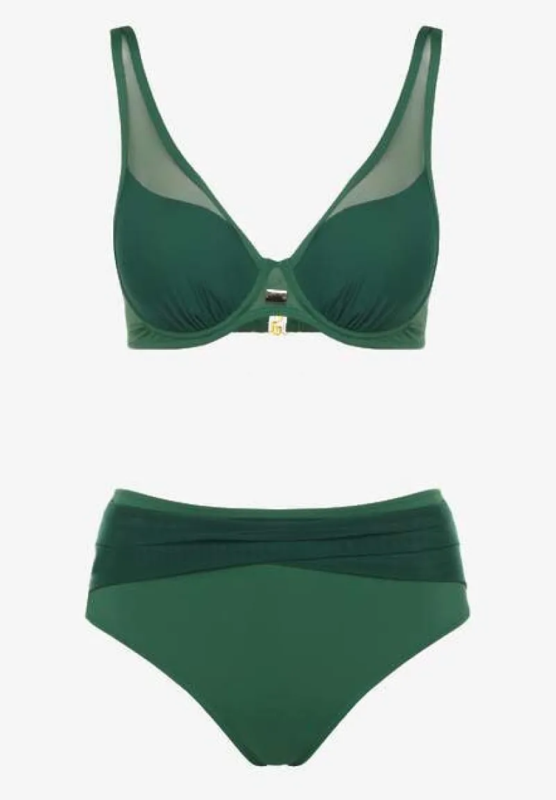 Ciemnozielone Bikini z Siateczkowymi Zdobieniami Biustonosz i Majtki Typu Figi Linelissa