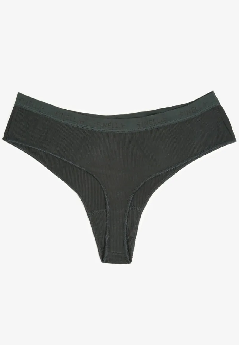 Odkryj stringi Briavia, które są definicją połączenia wygody z najnowszymi trendami. Prążkowany materiał gwarantuje dopasowanie do sylwetki i subtelnie podkreśla kształty, a designerskie wykończenie z napisem dodaje im unikatowego charakteru. Stringi te to must-have na każdą porę roku, idealne zarówno do codziennych stylizacji, jak i na specjalne okazje. Połącz je z elegancką bluzką i dopasowanym garniturem dla kontrastu pomiędzy profesjonalizmem a odrobiną frywolności, albo załóż pod casualową sukienkę.