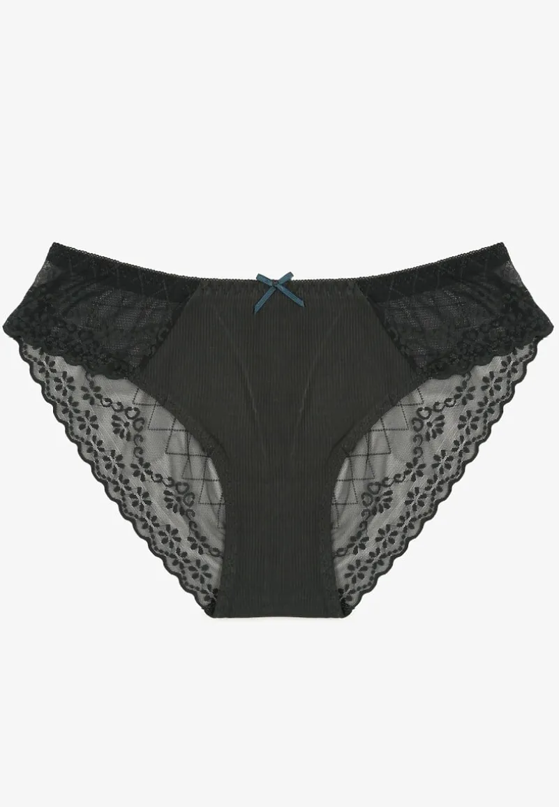 Majtki Typu Figi z Bawełny Ozdobione Koronką Emmoi to must-have w każdej modnej szafie! Klasyczny fason z koronkowym wykończeniem doda Twojemu stylowi nuty szku, idealnie podkreślając kobiecą sylwetkę. Te figi świetnie sprawdzą się zarówno w codziennych stylizacjach do pracy, zestawione z elegancką bluzką i spodniami palazzo, jak i na wieczorne wyjścia, w połączeniu z odkrytymi sandałami i zwiewną sukienką. Wybierz Emmoi i przekonaj się, jak niewiele potrzeba, by czuć się pewnie i stylowo!
