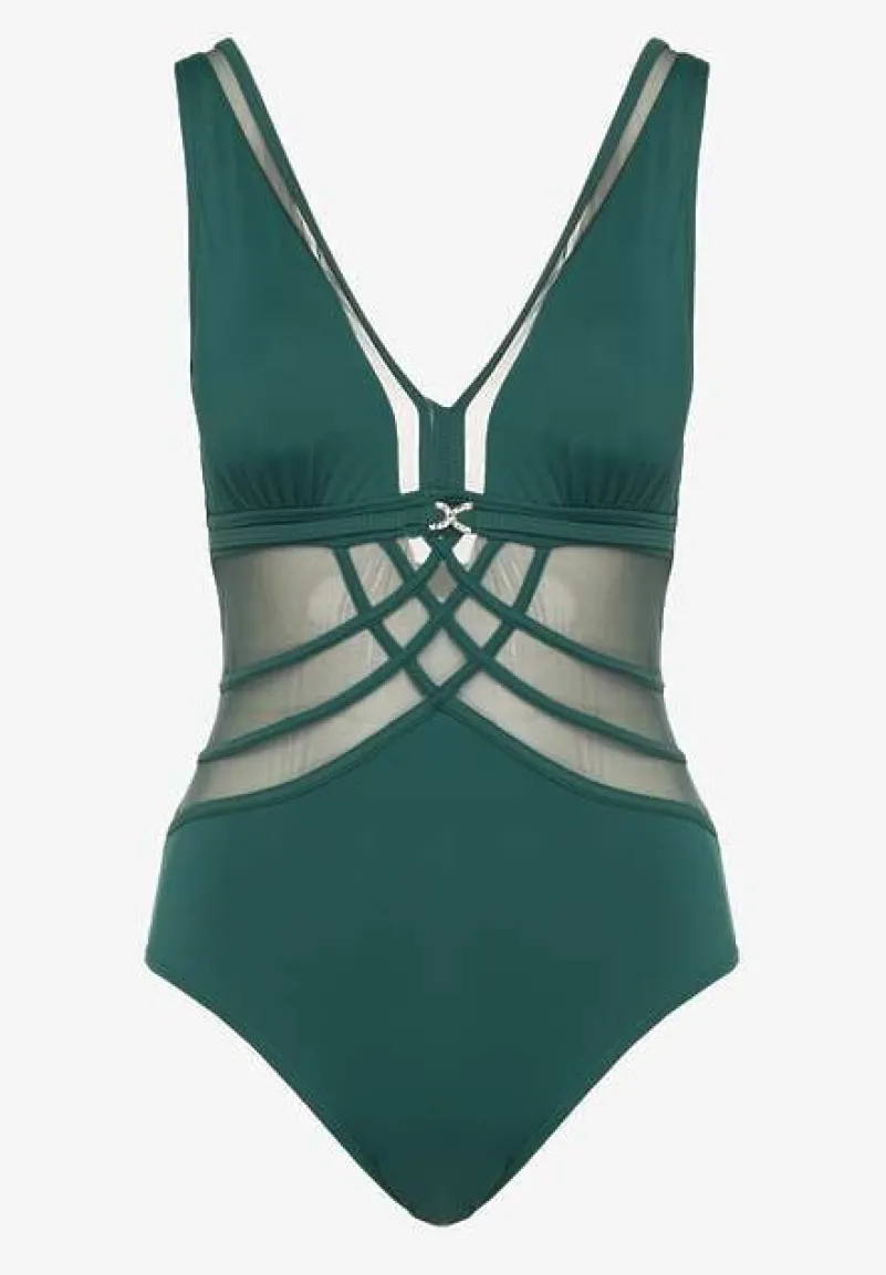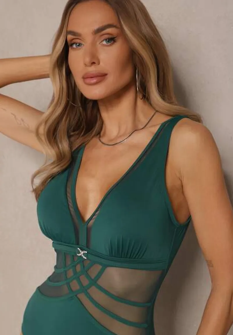 Ciemnozielony Strój Kąpielowy z Transparentnymi Wstawkami Folore