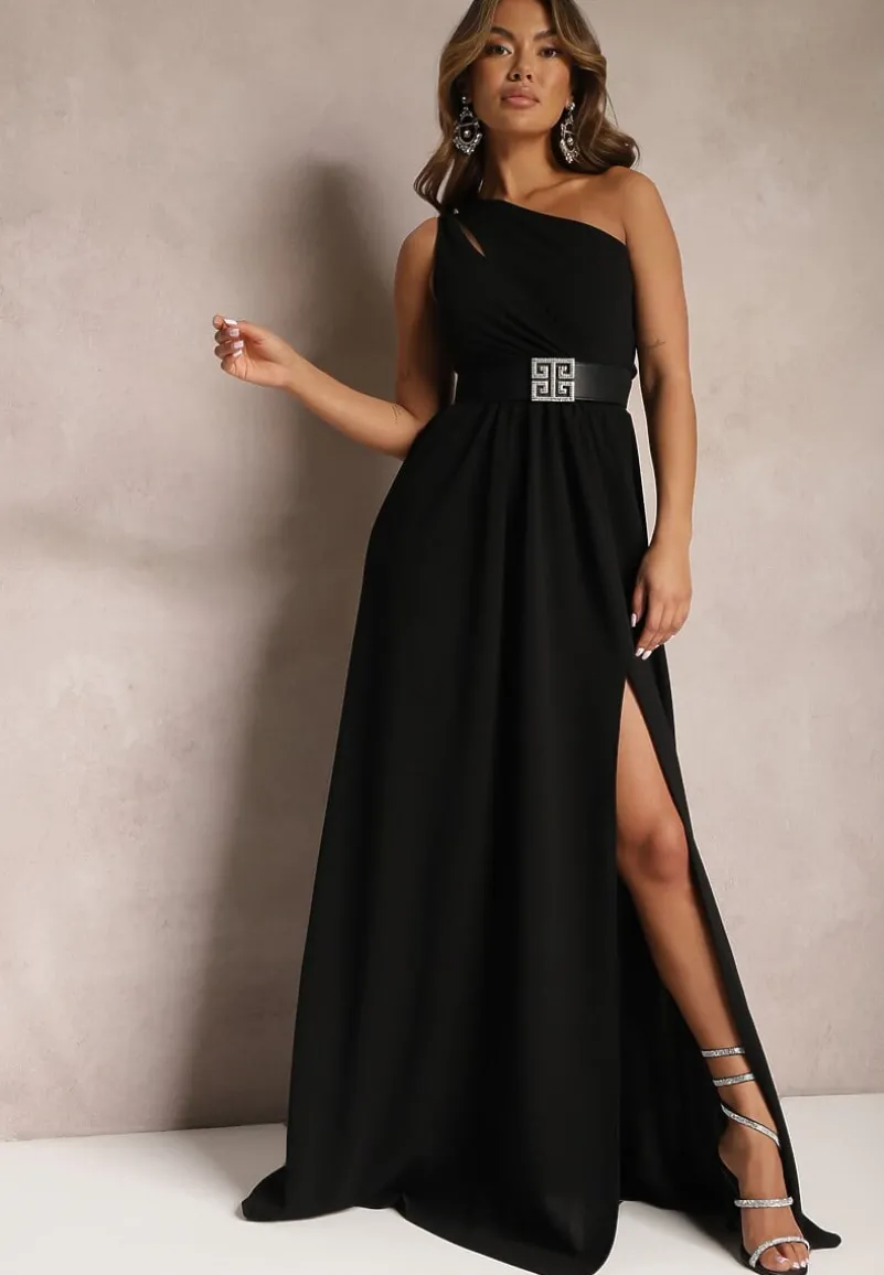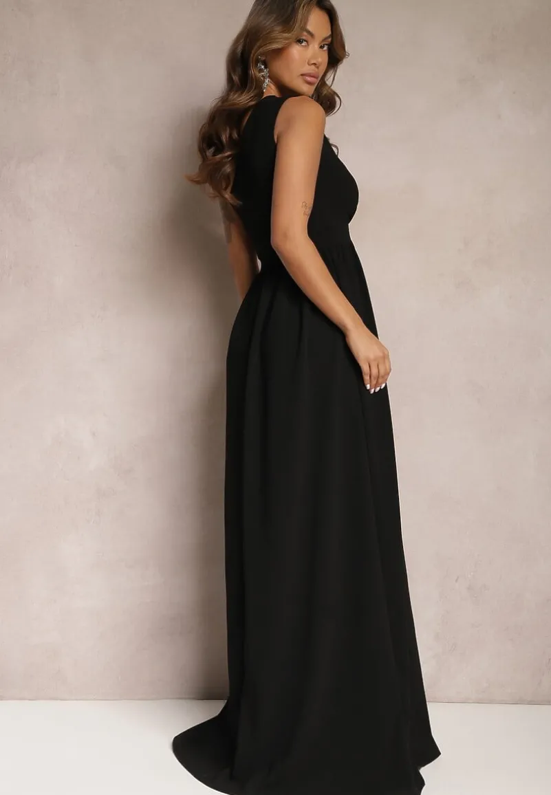 Czarna Asymetryczna Sukienka Rozkloszowana Maxi Adavia