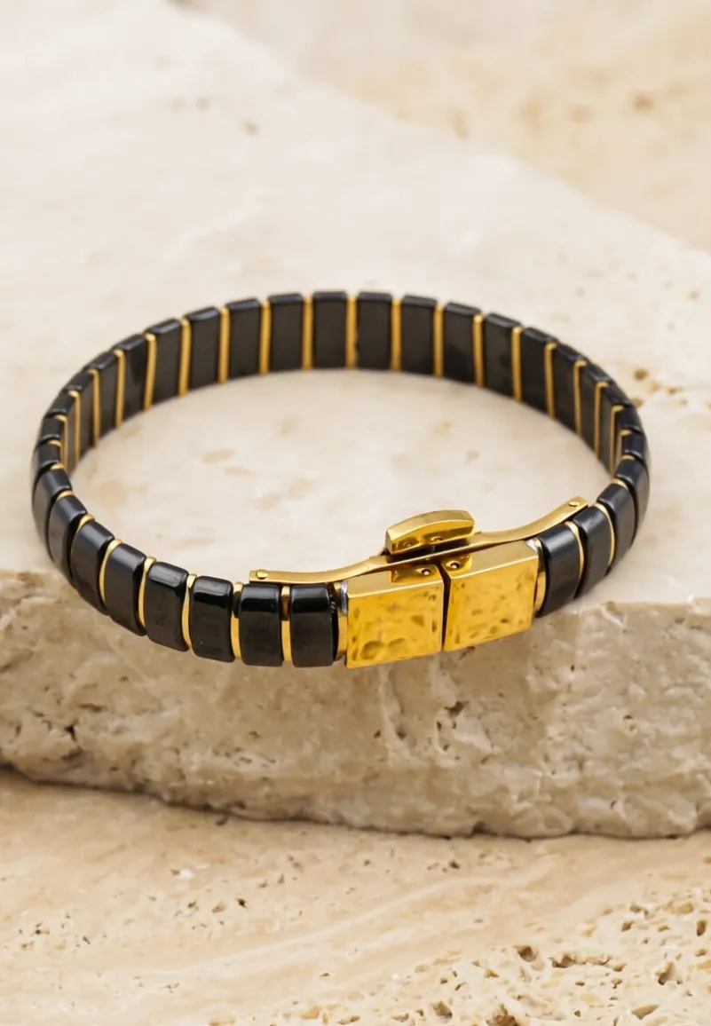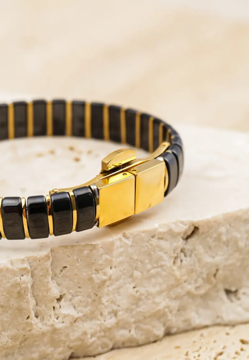 Bransoletka Venicia z ozdobnym zapięciem i wstawkami. Wykonana ze stali nierdzewnej. Idealna na wiele okazji.