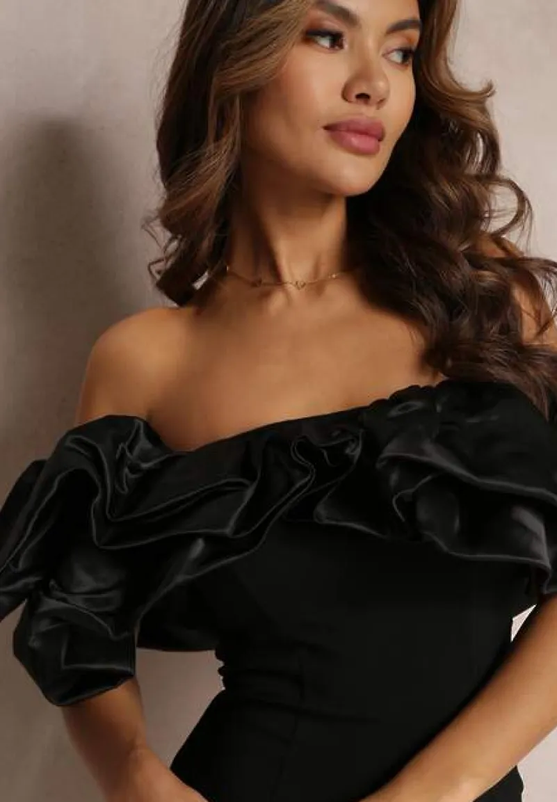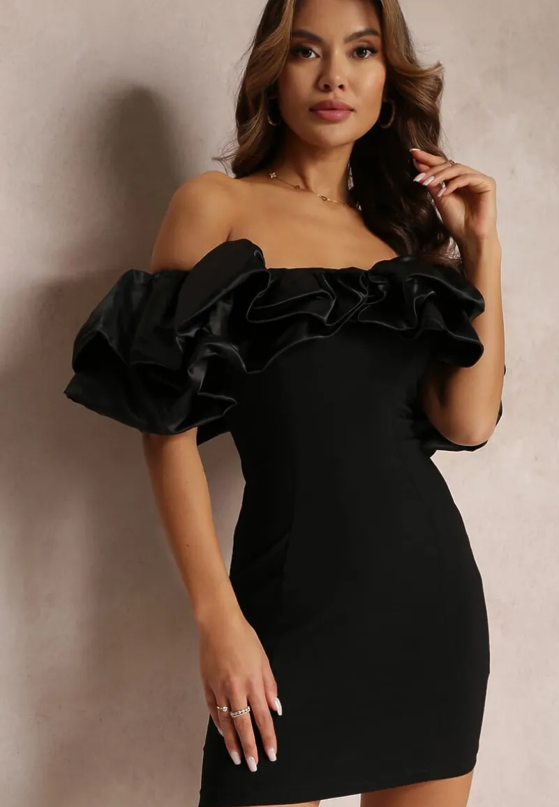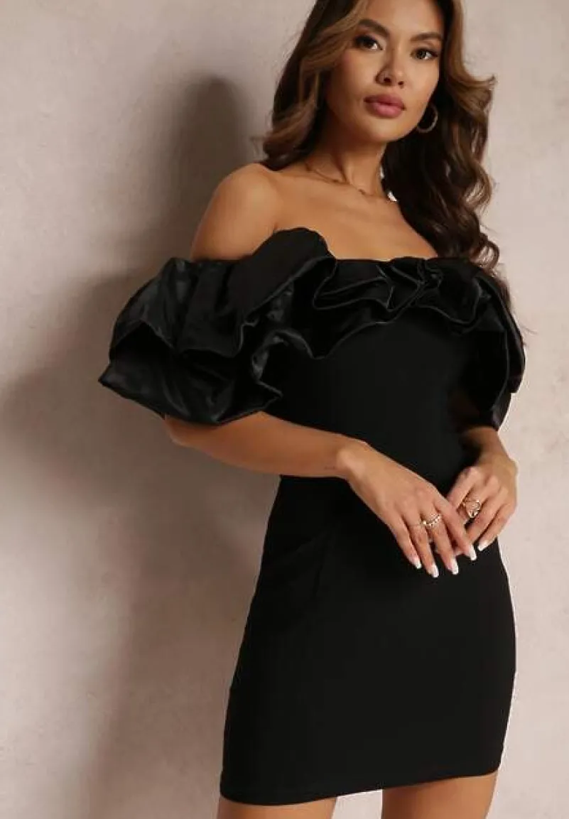 Czarna Dopasowana Sukienka Mini z Falbanami Denime