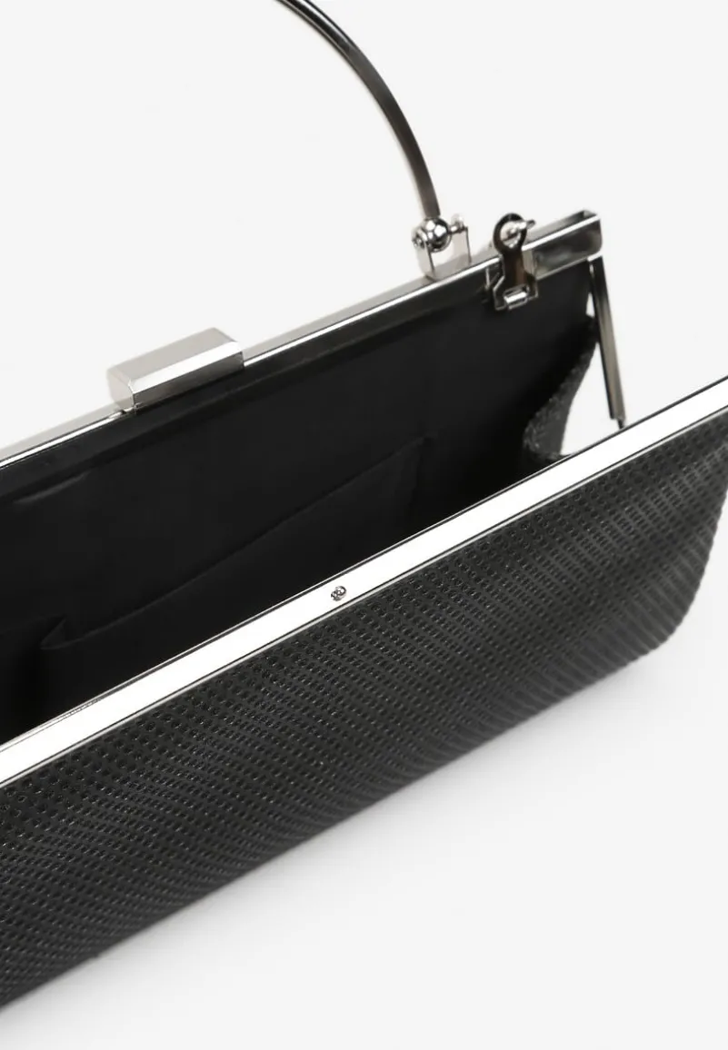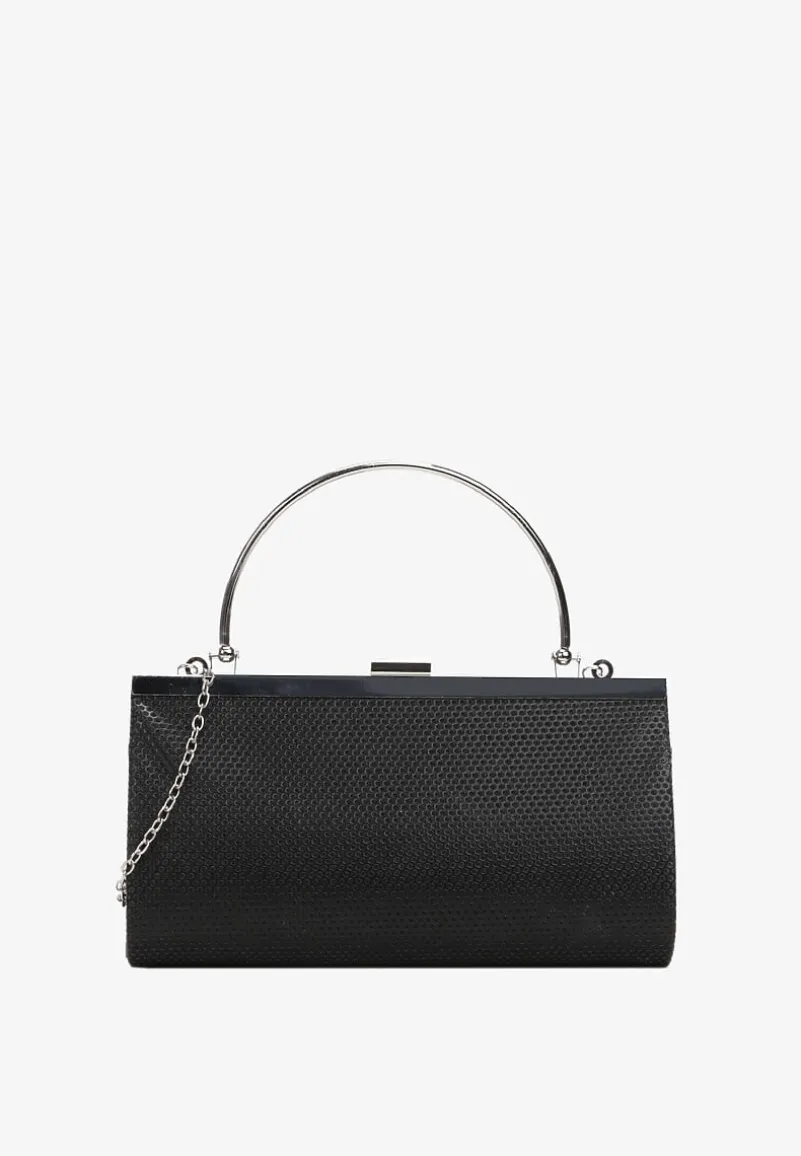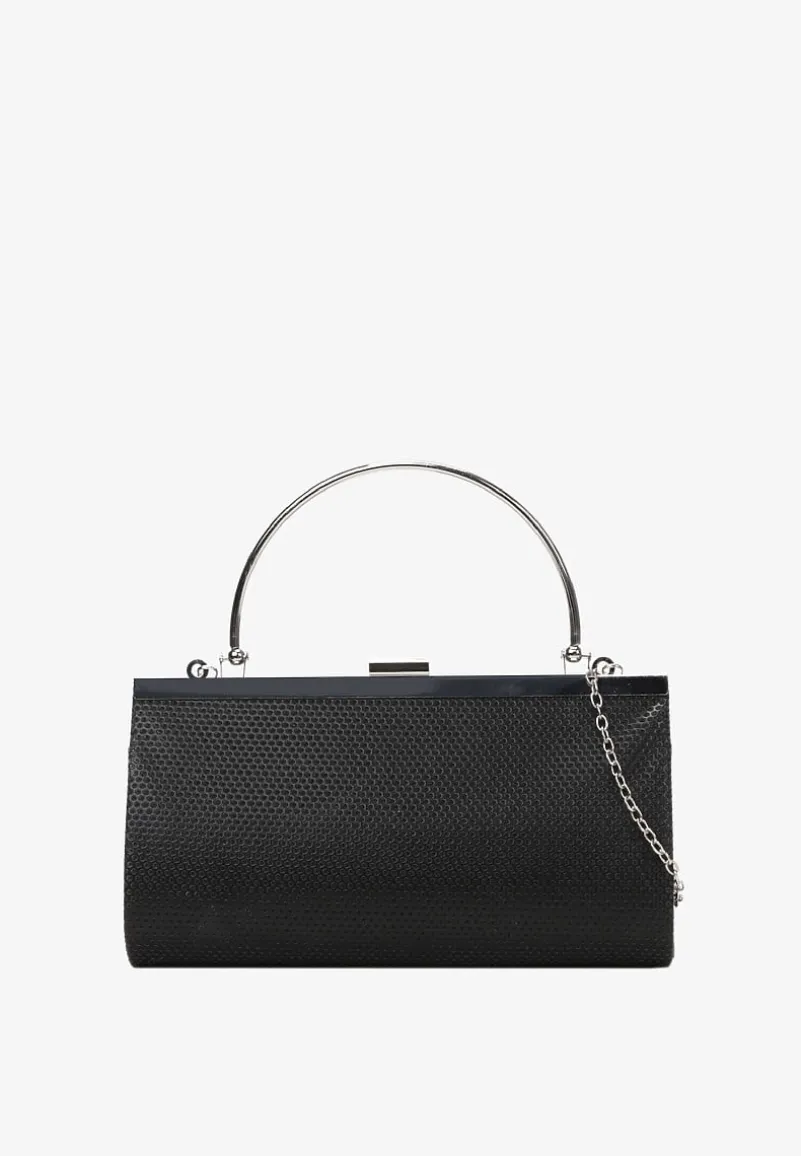 Torebka Fortelsa z brokatowego materiału. Model o fasonie kopertówki w małym rozmiarze. Wyróżnia się metalową rączką i odpinanym łańcuszkiem. Idealna na wyjątkowe okazje.