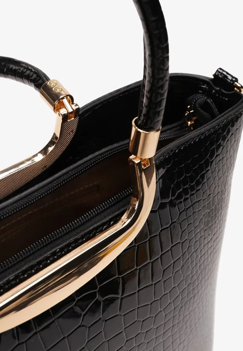 Torebka Venis jest wykonana z lakierowanej skóry, a tłoczenia imitują wężową skórę. Posiada dwie komory zapinane na suwaki. Idealna do casualowych i eleganckich sukienek oraz spódnic.