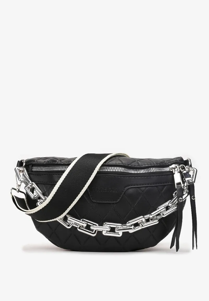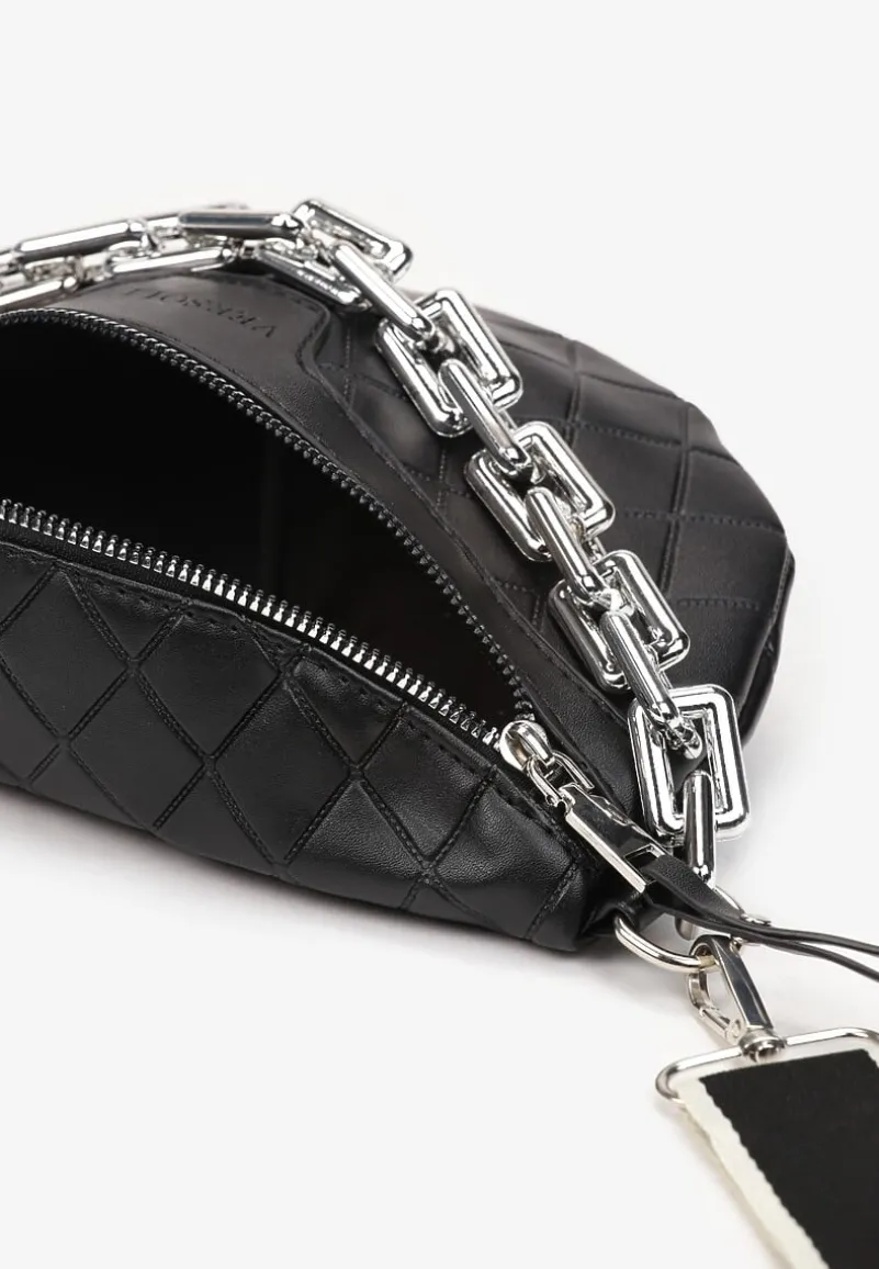 Nerka Polonia zapinana na zamek błyskawiczny z dekoracyjną zawieszką na końcu. Wykonana z ekoskóry ze stylowym tłoczeniem. Z regulowanym, materiałowym paskiem na karabińczykach oraz rączką z metalowego łańcucha. To praktyczna propozycja do codziennego użytku.