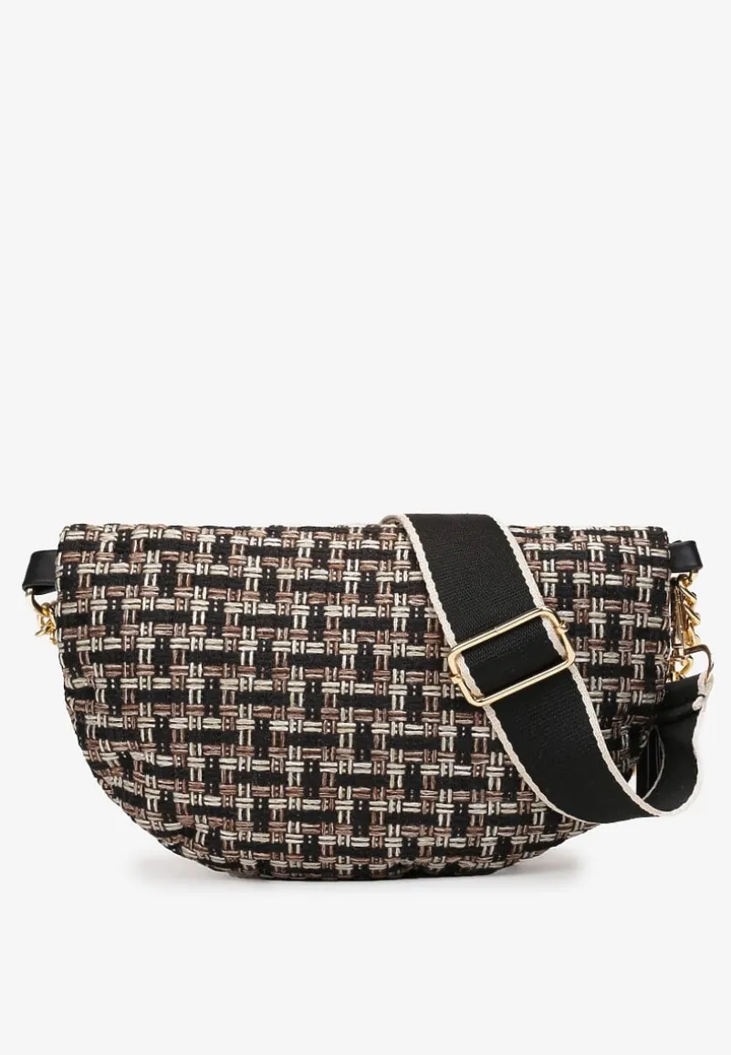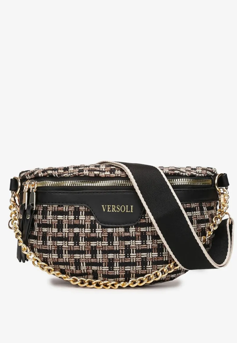 Nerka Freesas stylizowana na model vinage, zdobiona żakardowym wzorem w drobną kratę. Zapinana na zamek błyskawiczny z dwoma suwakami, posiada dwa paski – materiałowy z regulacją i elegancki, krótki z łańcuszka.
