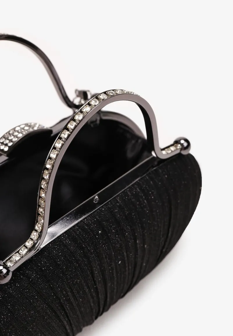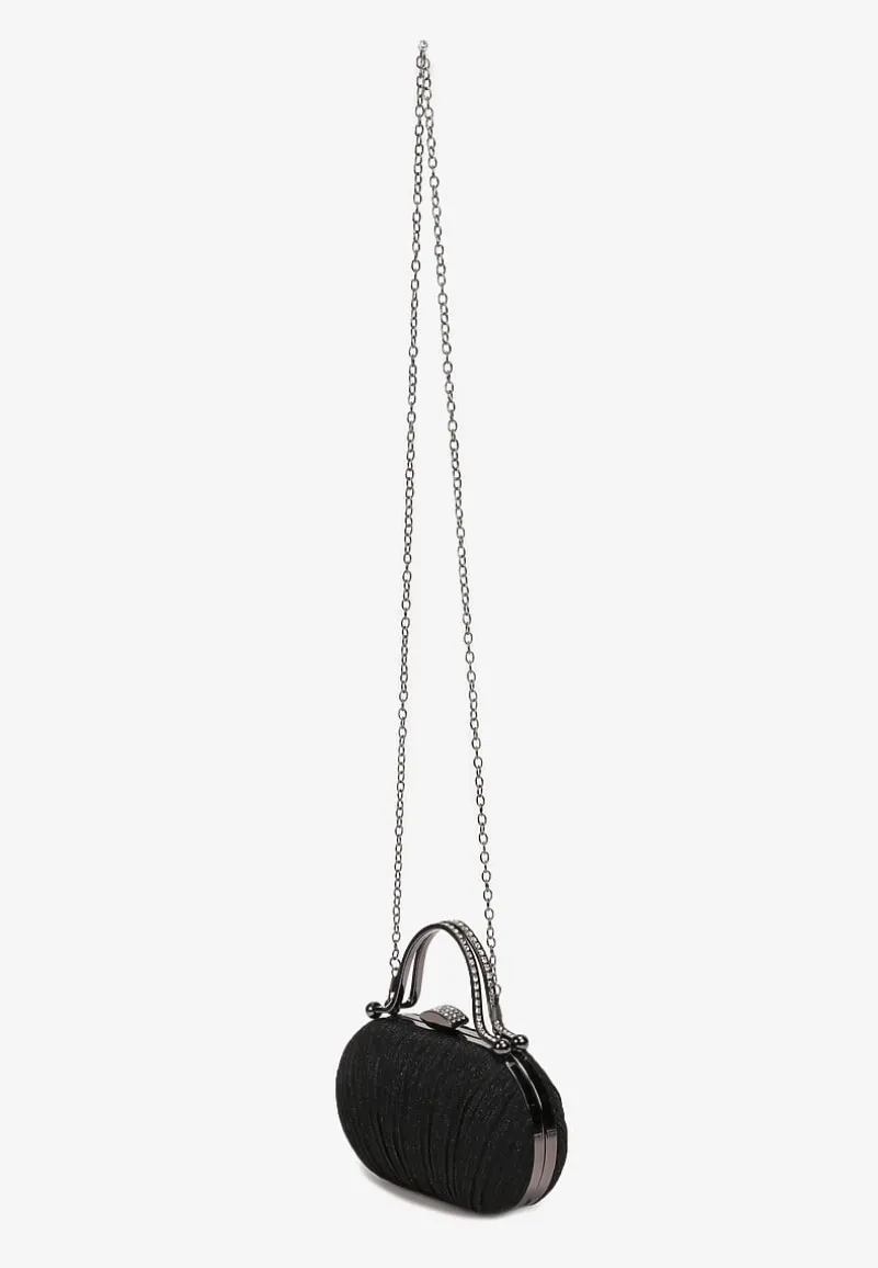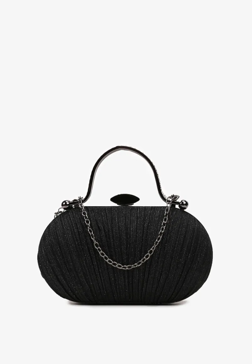 Torebka Olizja o fasonie kopertówki, zapinana na metalowy zatrzask. Zawieszona na rączce w cyrkonie. Dodatkowo zestawiona z łańcuszkiem na ramię. Torebka pokryta połyskującym brokatem.