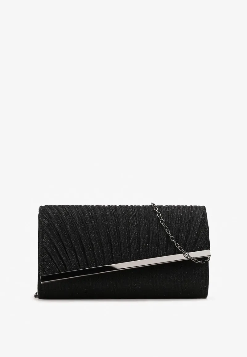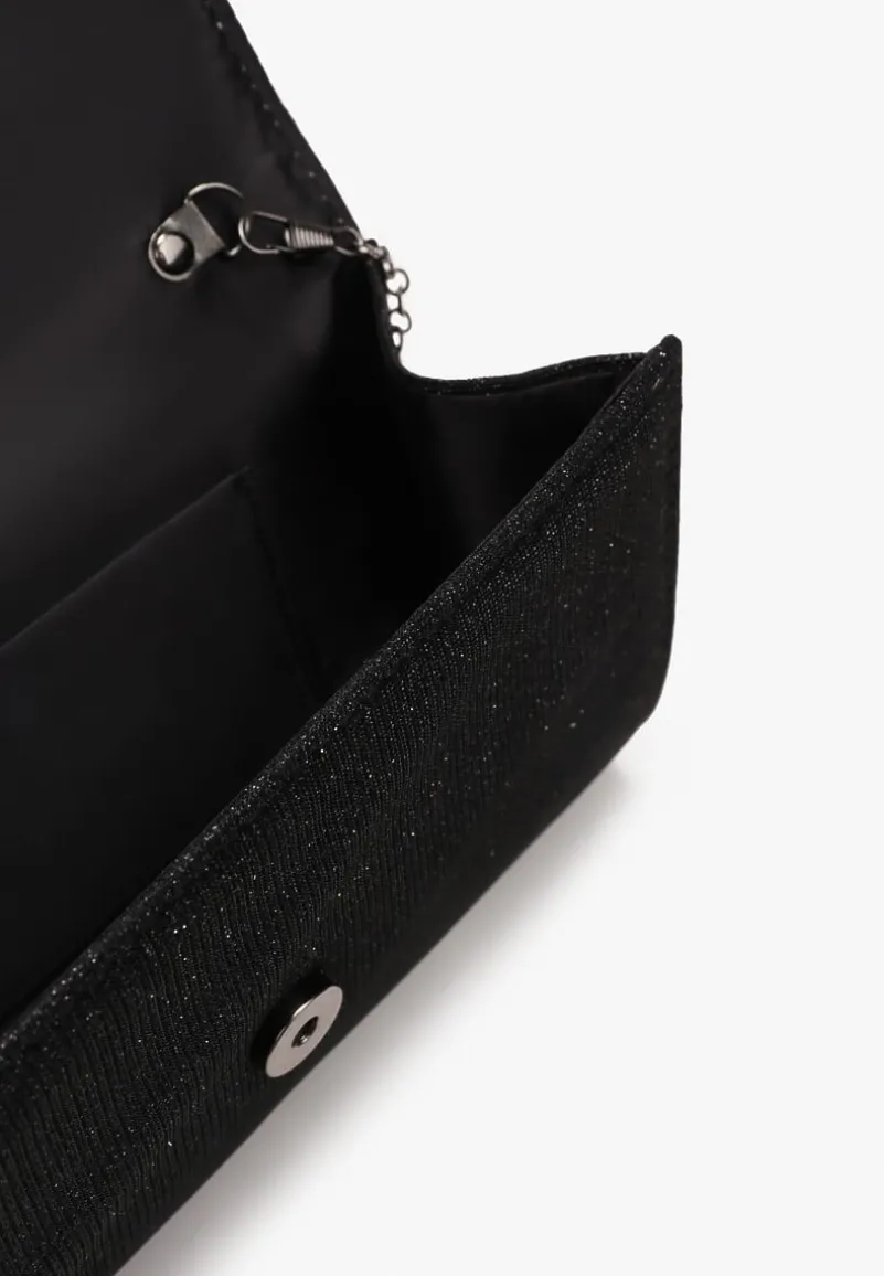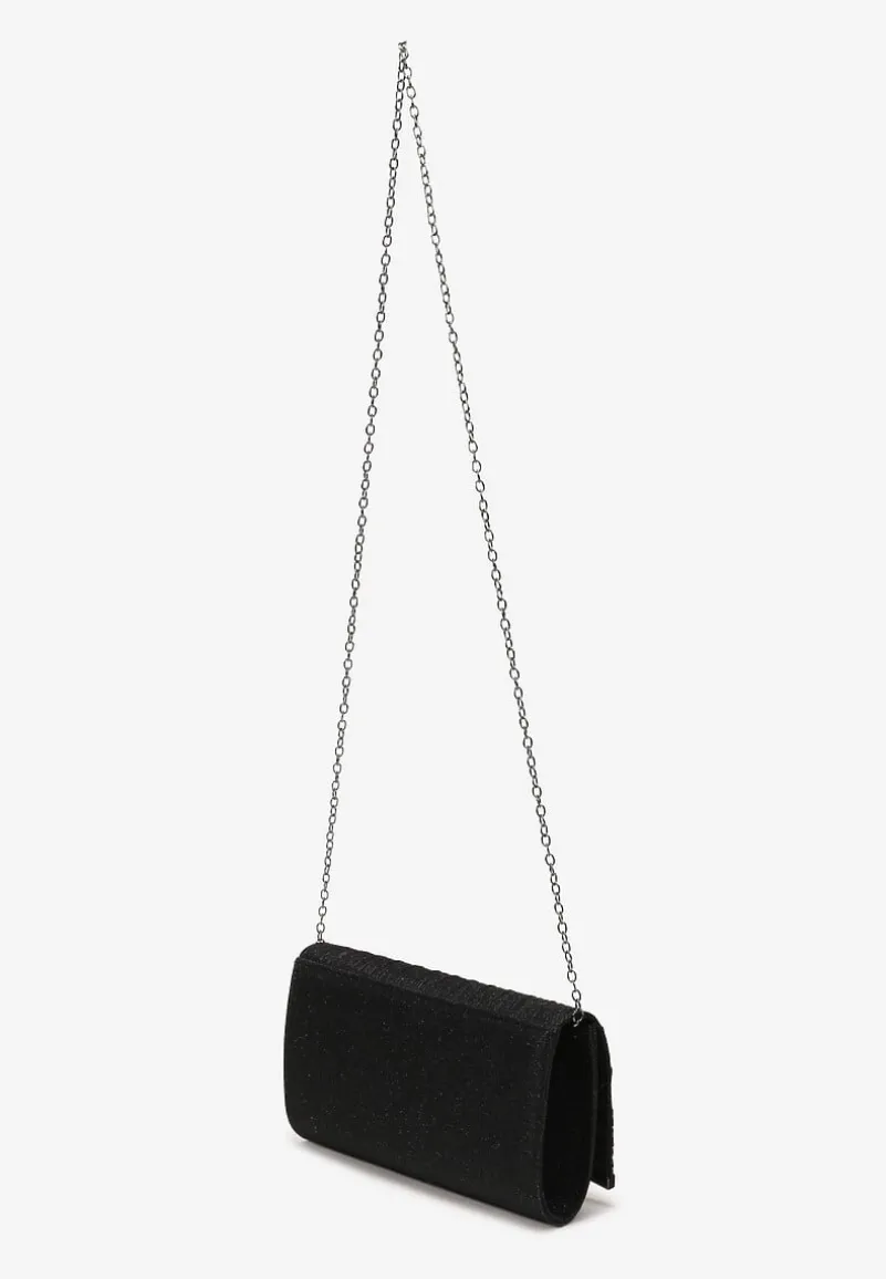 Torebka Trippiera o fasonie kopertówki z asymetryczną klapką wykończoną lamówką. Udekorowana brokatem oraz drapowaniem przyciąga spojrzenia.