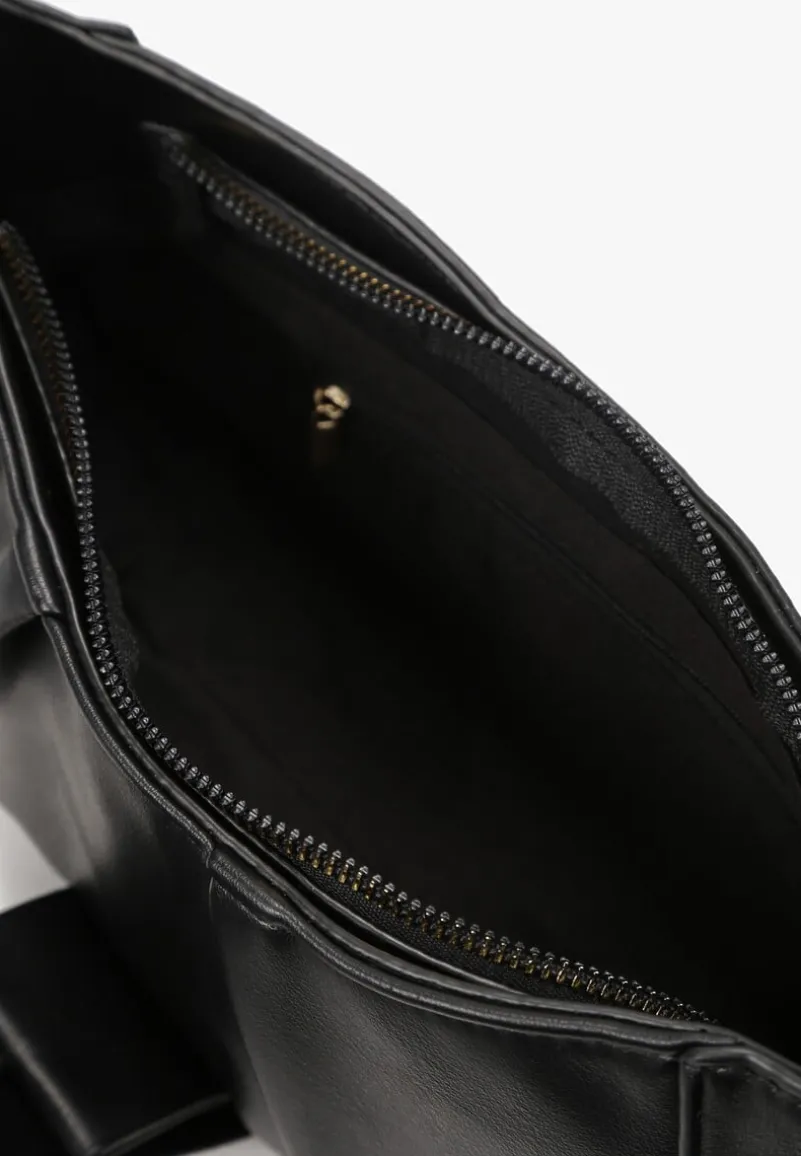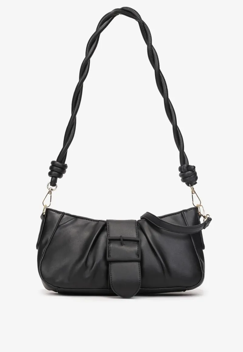 Torebka Nikeia zapinana na suwak oraz szeroki pasek z magnetycznym zatrzaskiem. Jednokomorowa, z zasuwaną kieszonką wewnątrz. Model o fasonie typu baguette. Wyposażona w zapleciony, długi uchwyt do trzymania w dłoni lub przewieszenia przez ramię. Do torebki dołączono dłuższy, regulowany pasek. Mała, nie mieści A4. Wykonana z ekoskóry pokrytej delikatnymi marszczeniami. Wprowadzi do Twojej stylizacji supermodny akcent. Noś ją z butami z łańcuchem.
