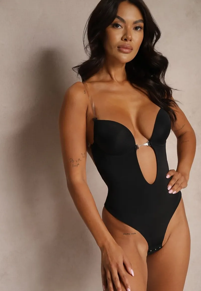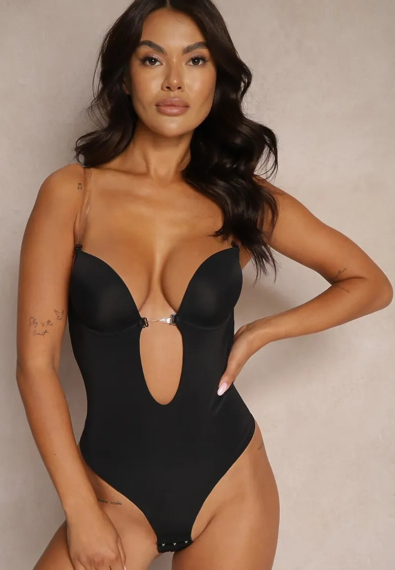 Czarne Asymetryczne Body Bieliźniane na Transparentnych Ramiączkach Ciaelle
