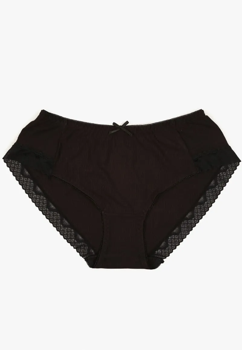Bawełniane majtki o kroju fig z kokardką i koronką Tamiseth to kwintesencja subtelnej elegancji oraz ponadczasowego stylu. Ich klasyczny fason doskonale podkreśla kobiece kształty, a delikatna kokardka dodaje uroku i wyjątkowości. Sprawdzą się na co dzień pod casualową sukienkę.