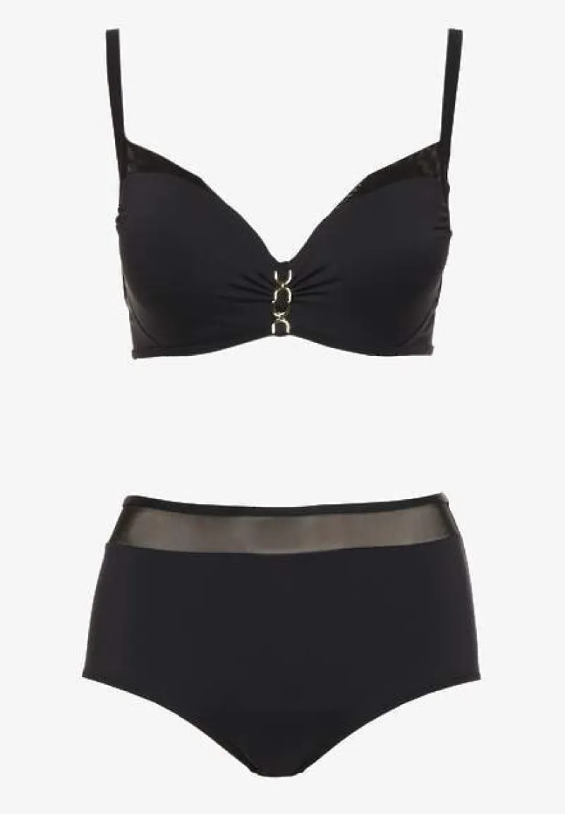 Czarne Bikini Biustonosz Zdobiony Aplikacją i Majtki Typu Figi Iffirelle