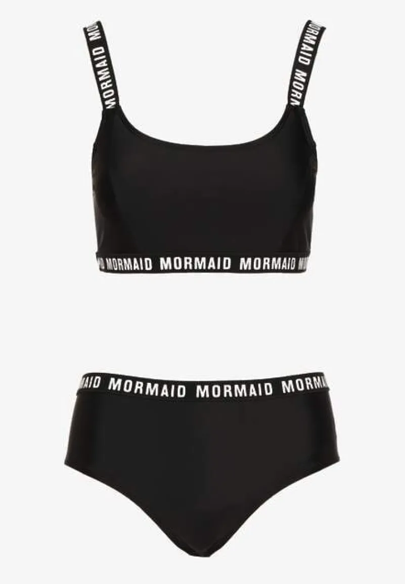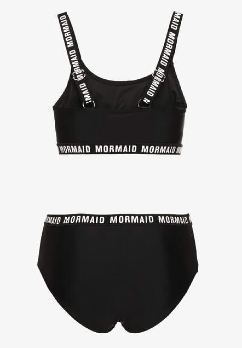 Czarne Bikini Majtki Typu Figi i Sportowa Góra Ozdobione Napisami Nevoneira