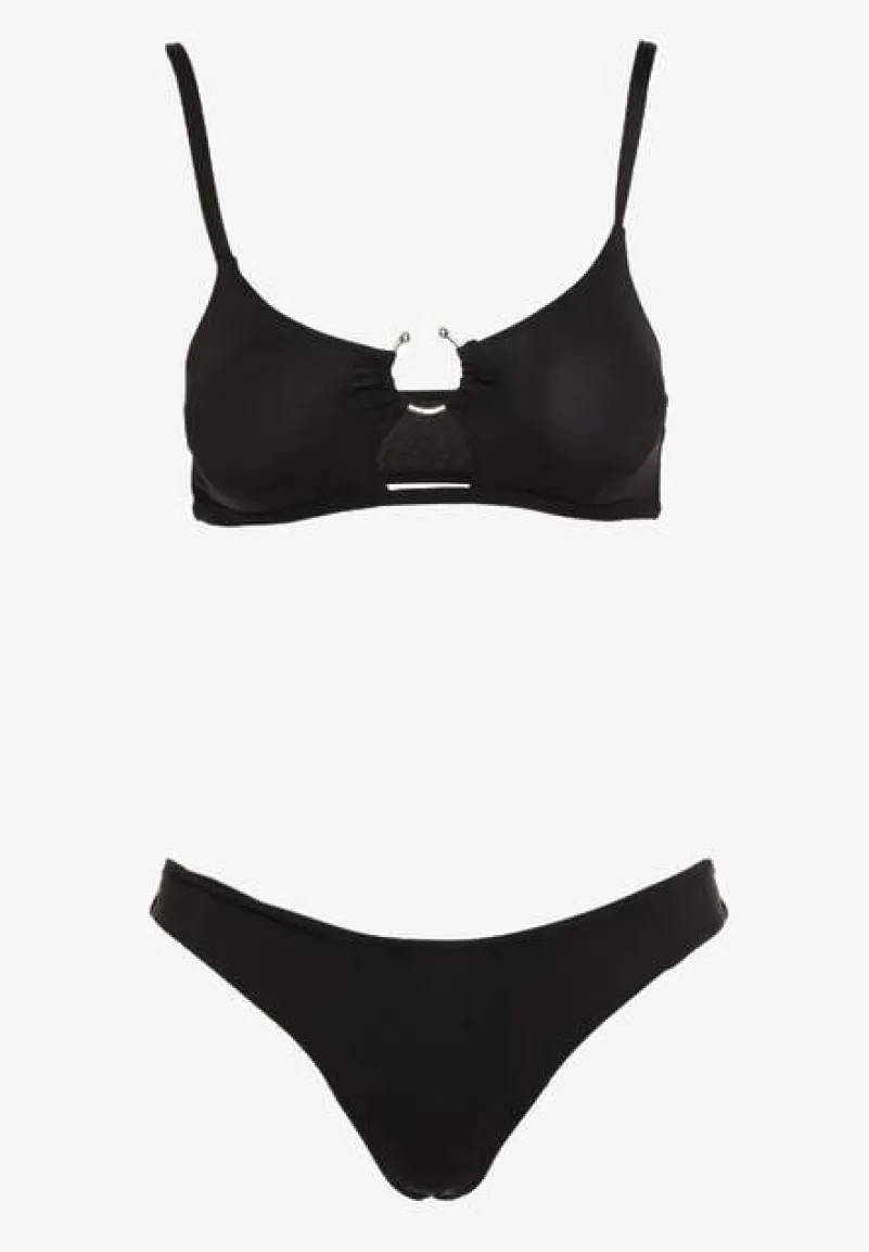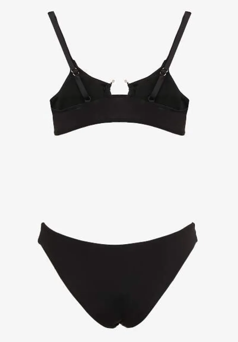 Czarne Bikini Nieodpinany Biustonosz z Usztywnianymi Miseczkami i Klamerką przy Dekolcie na Regulowanych Ramiączkach Majtki z Elastyczną Gumką w Pasie Kiaramarie