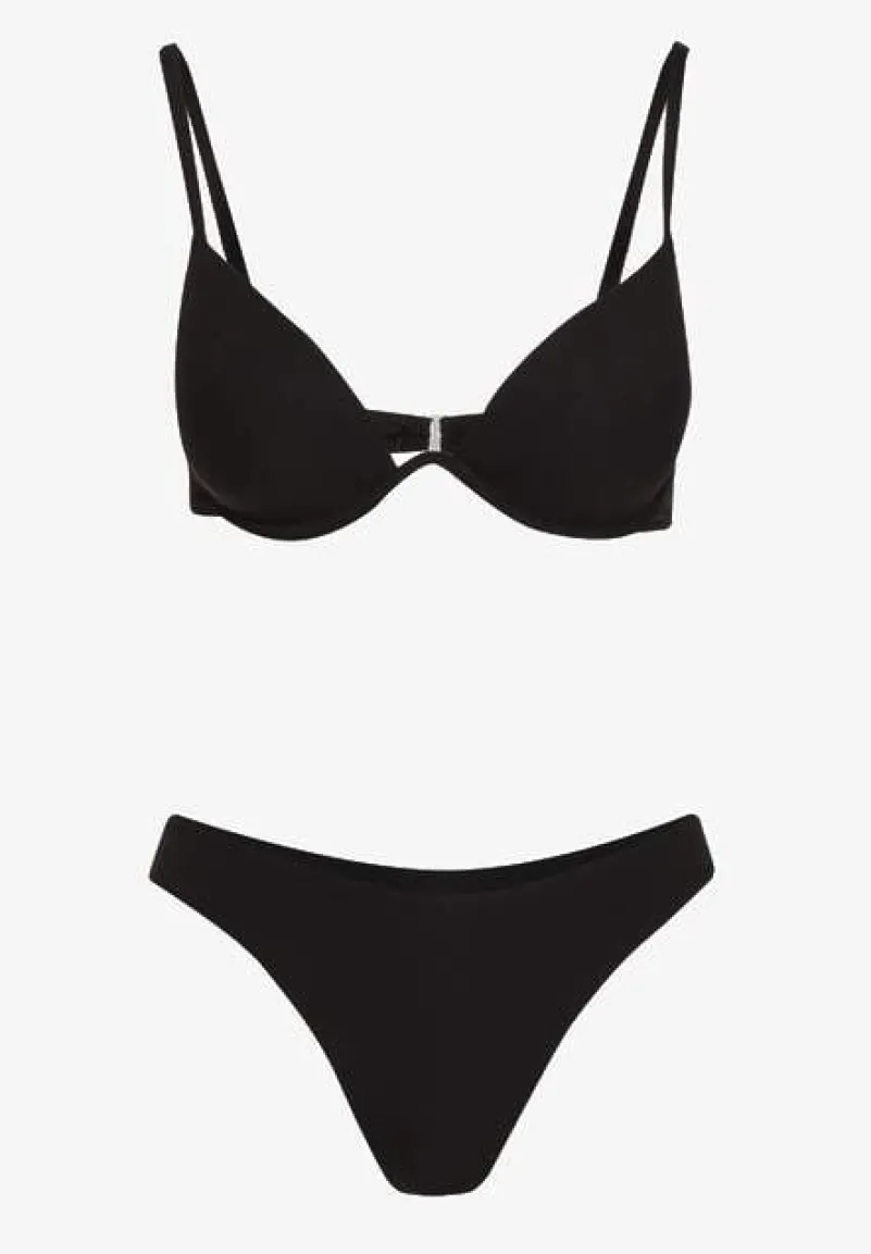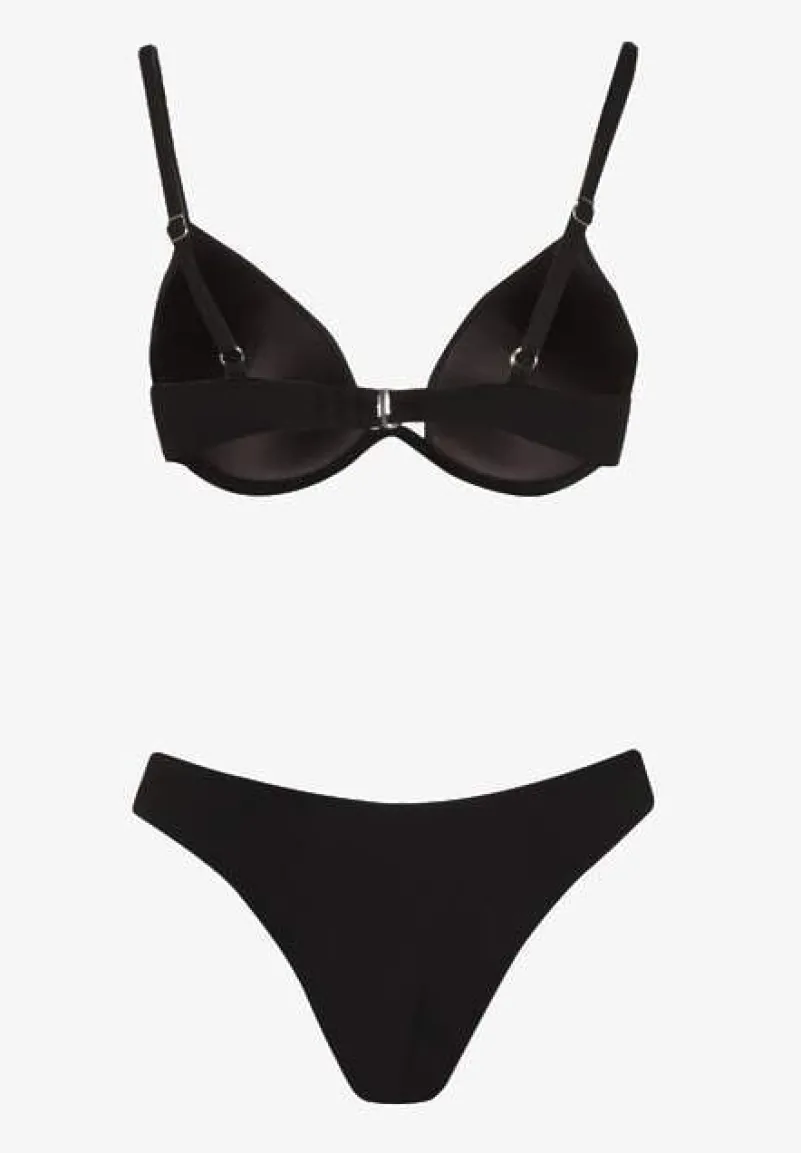 Czarne Bikini Usztywniany Biustonosz z Zapięciem z Tyłu i Majtkami Figami Ermarie