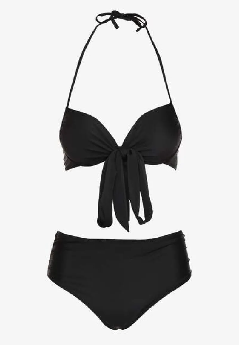 Czarne Bikini Wiązany Biustonosz i Majtki Typu Figi Fevarelia